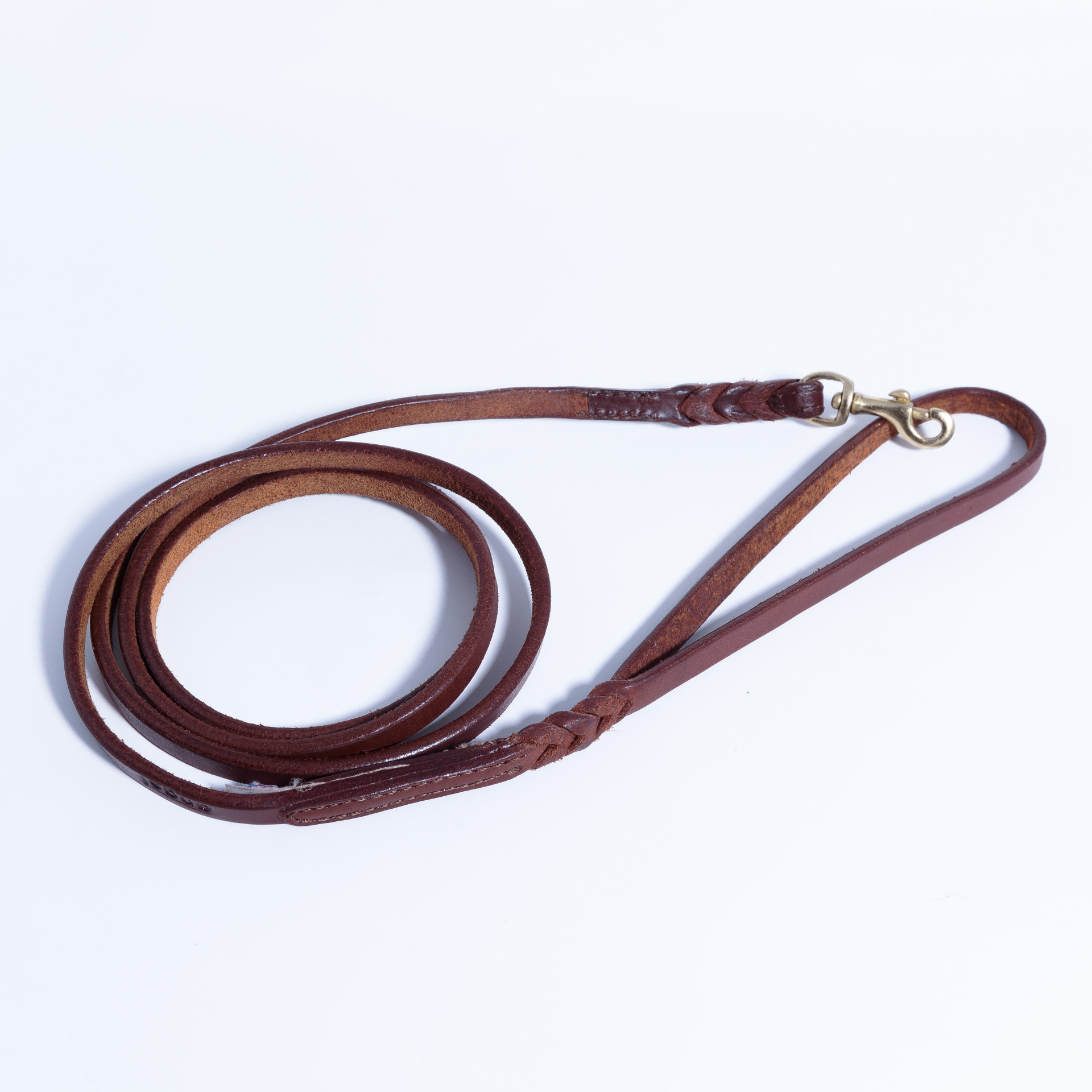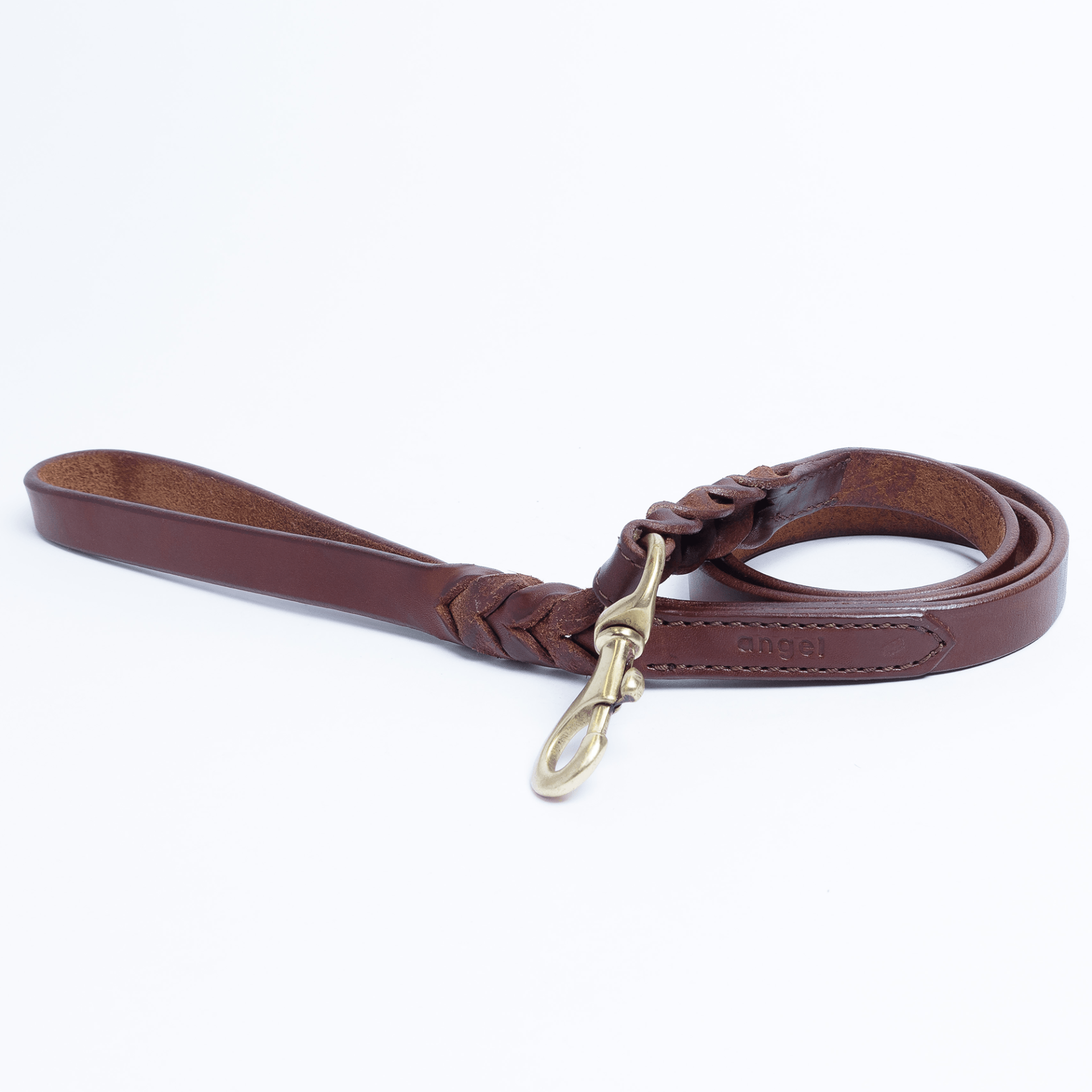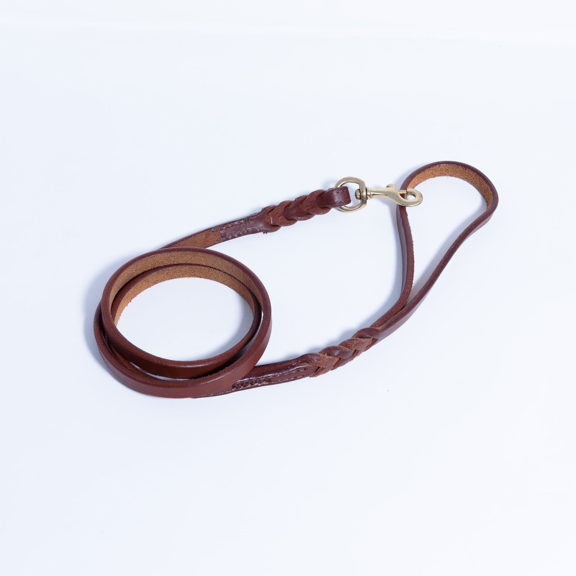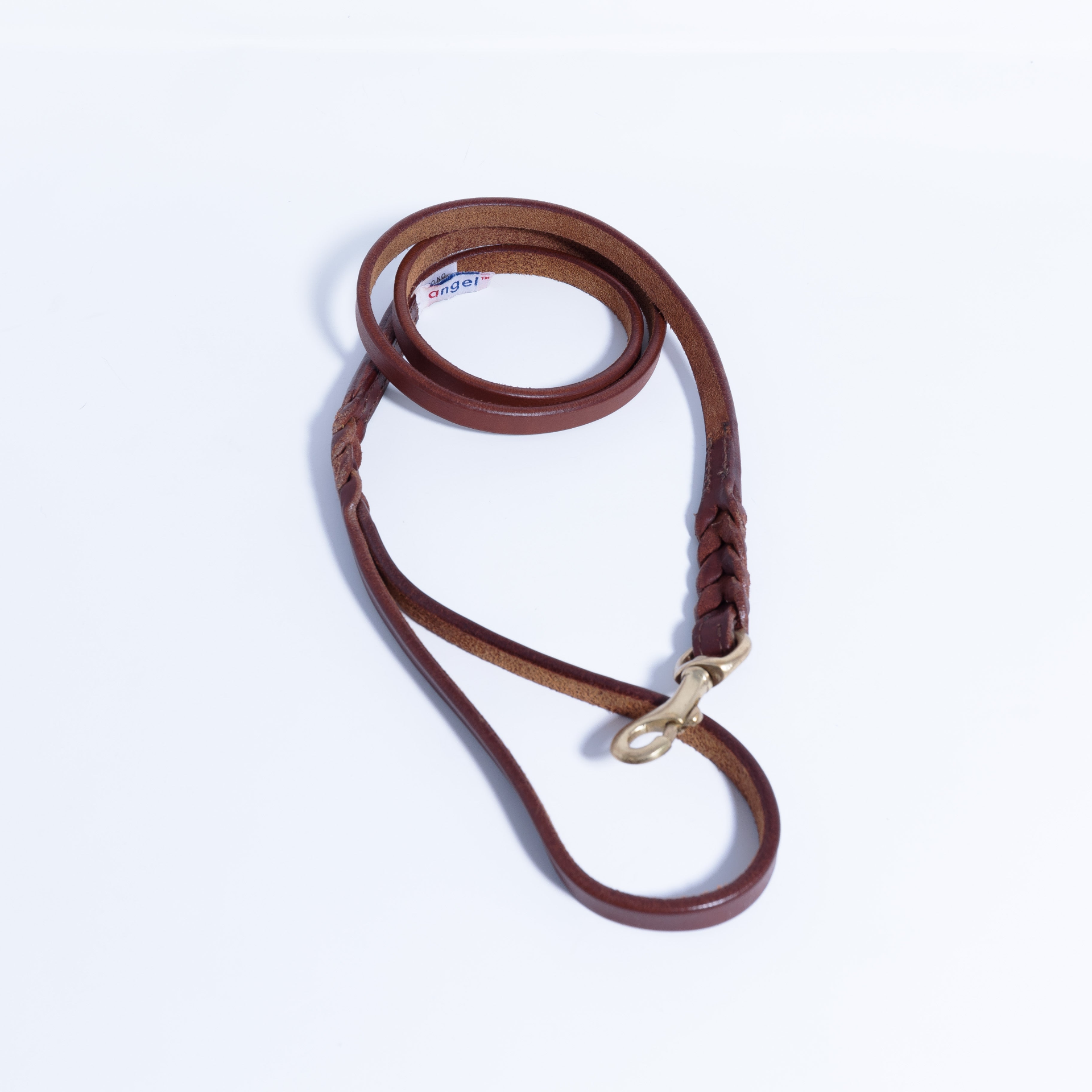 Extremely strong and durable, this leash collection is made of 100% Genuine Harness Leather and complimented with solid brass snaps. Perfect for training, walking or just about anything. The leash is hand- braided just under the handle and just above the snap hook.