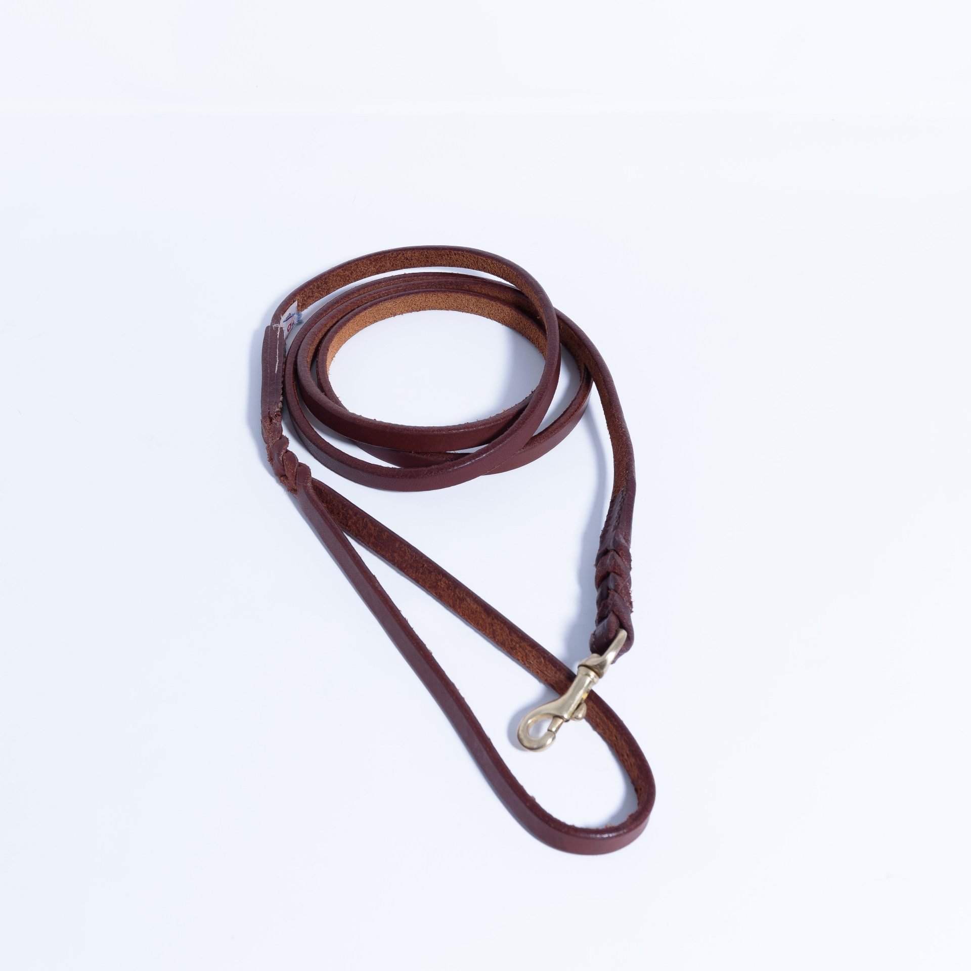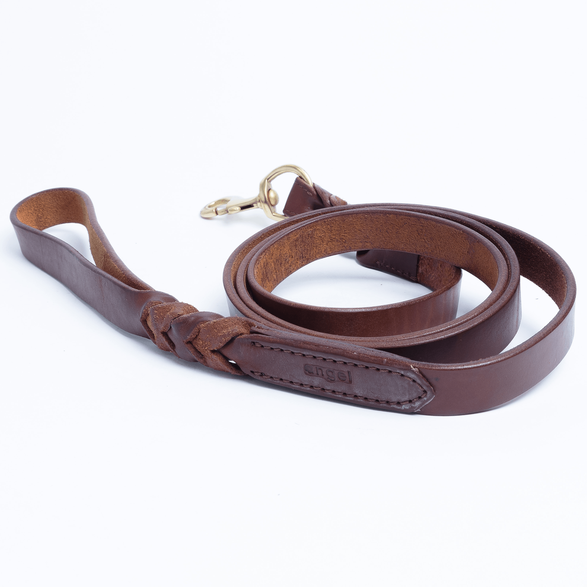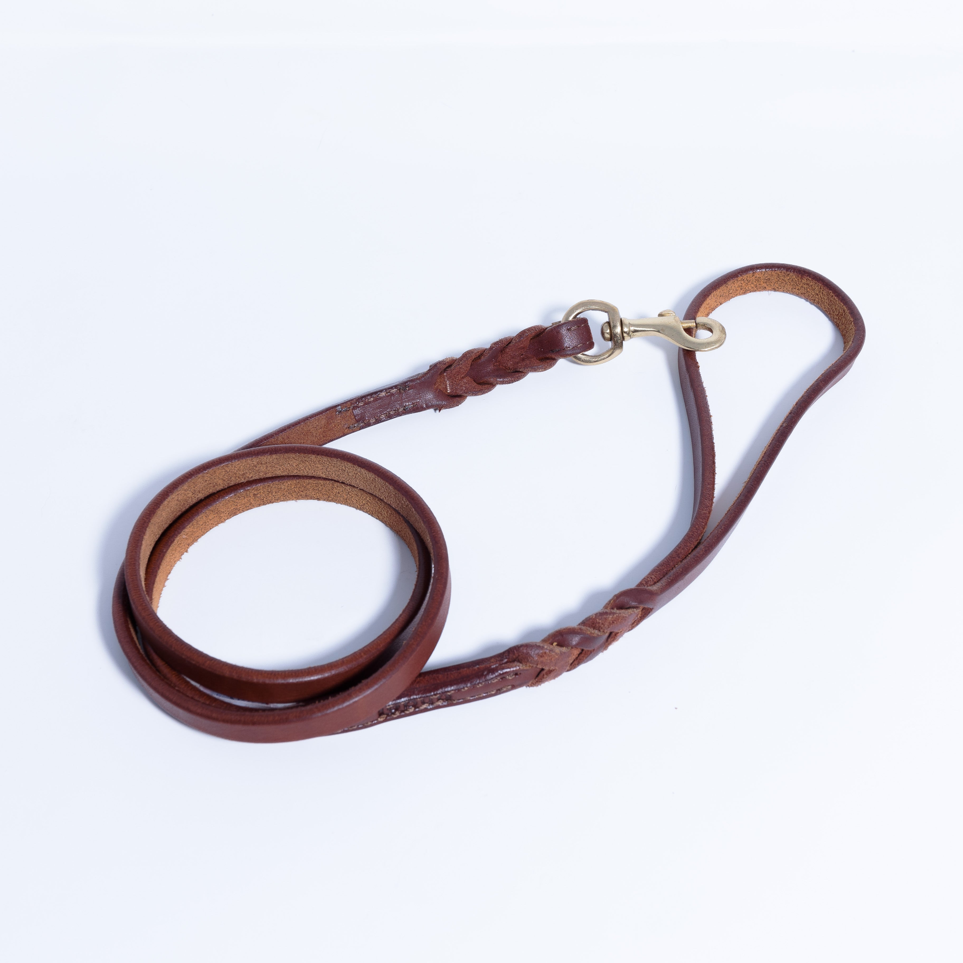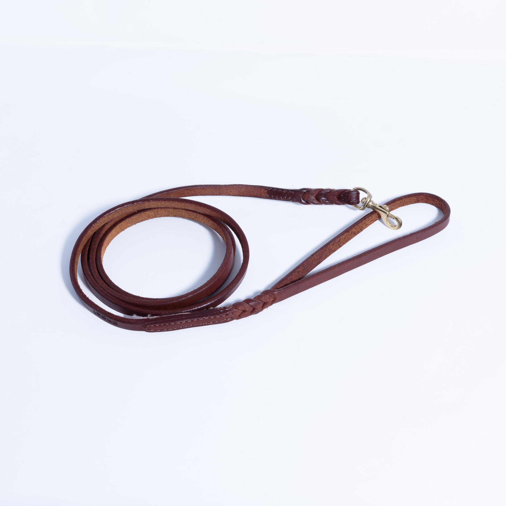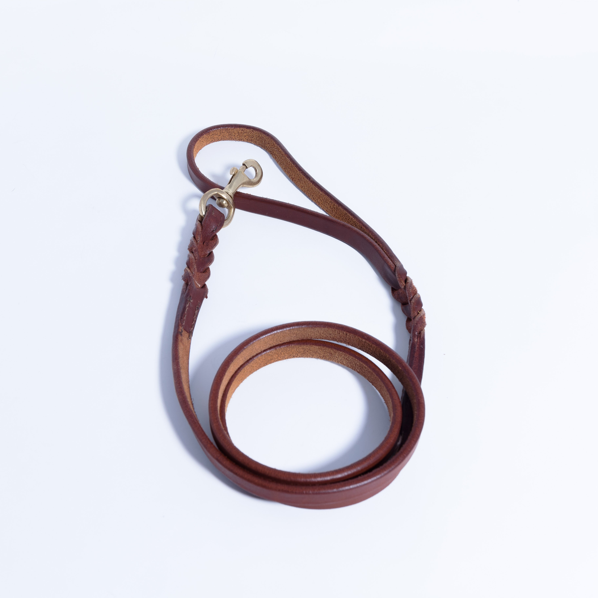 Extremely strong and durable, this leash collection is made of 100% Genuine Harness Leather and complimented with solid brass snaps. Perfect for training, walking or just about anything. The leash is hand- braided just under the handle and just above the snap hook.