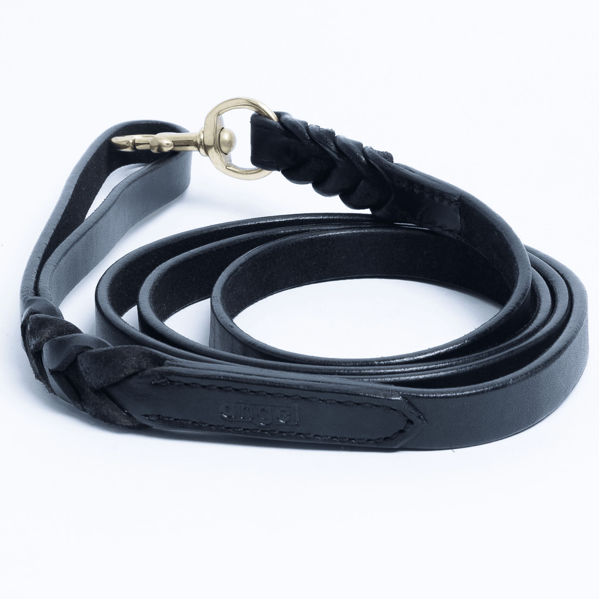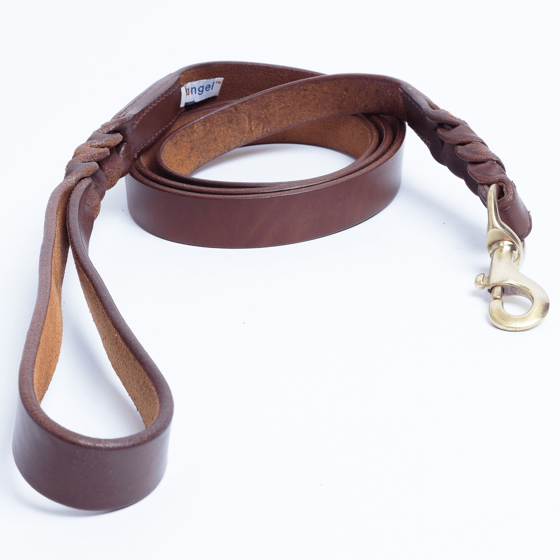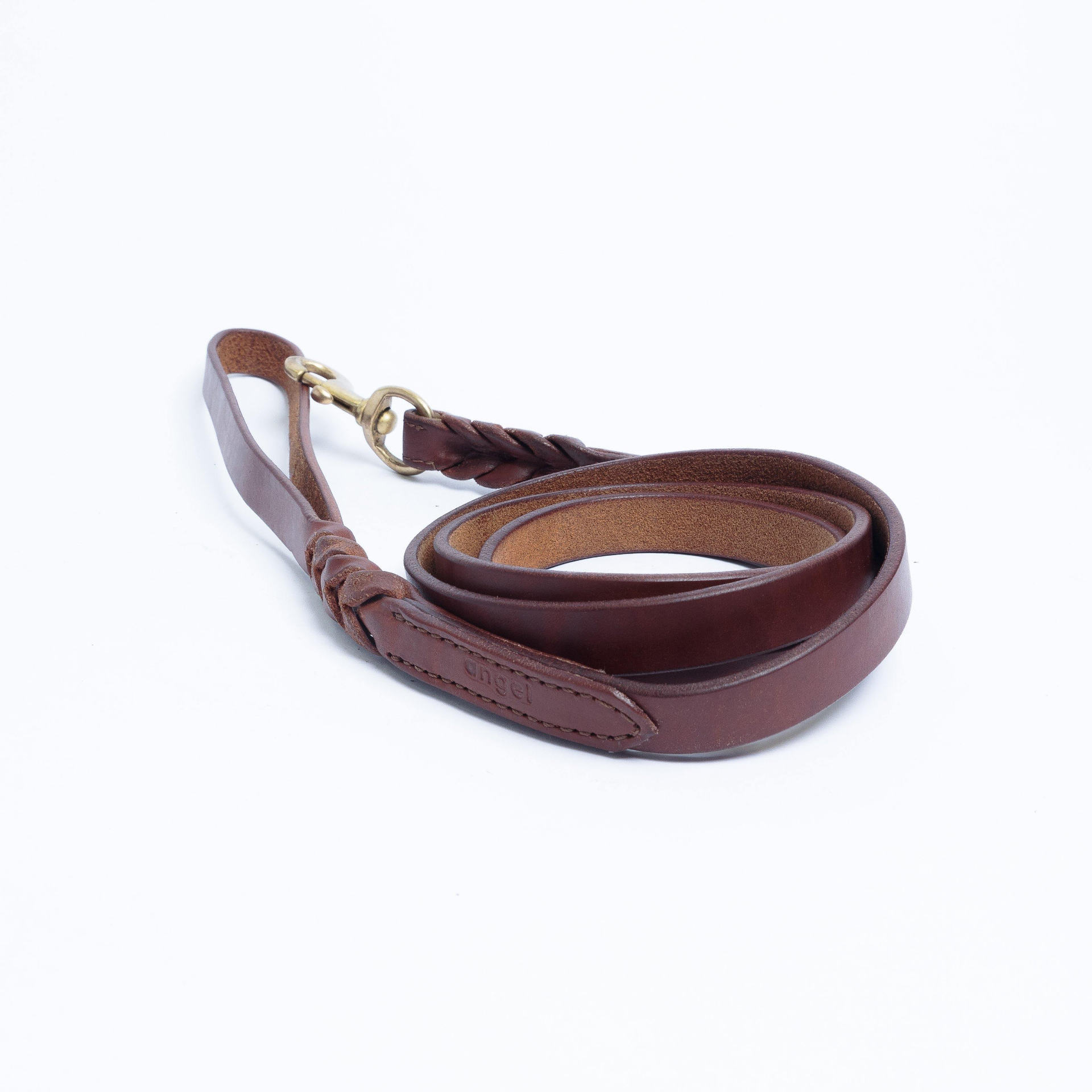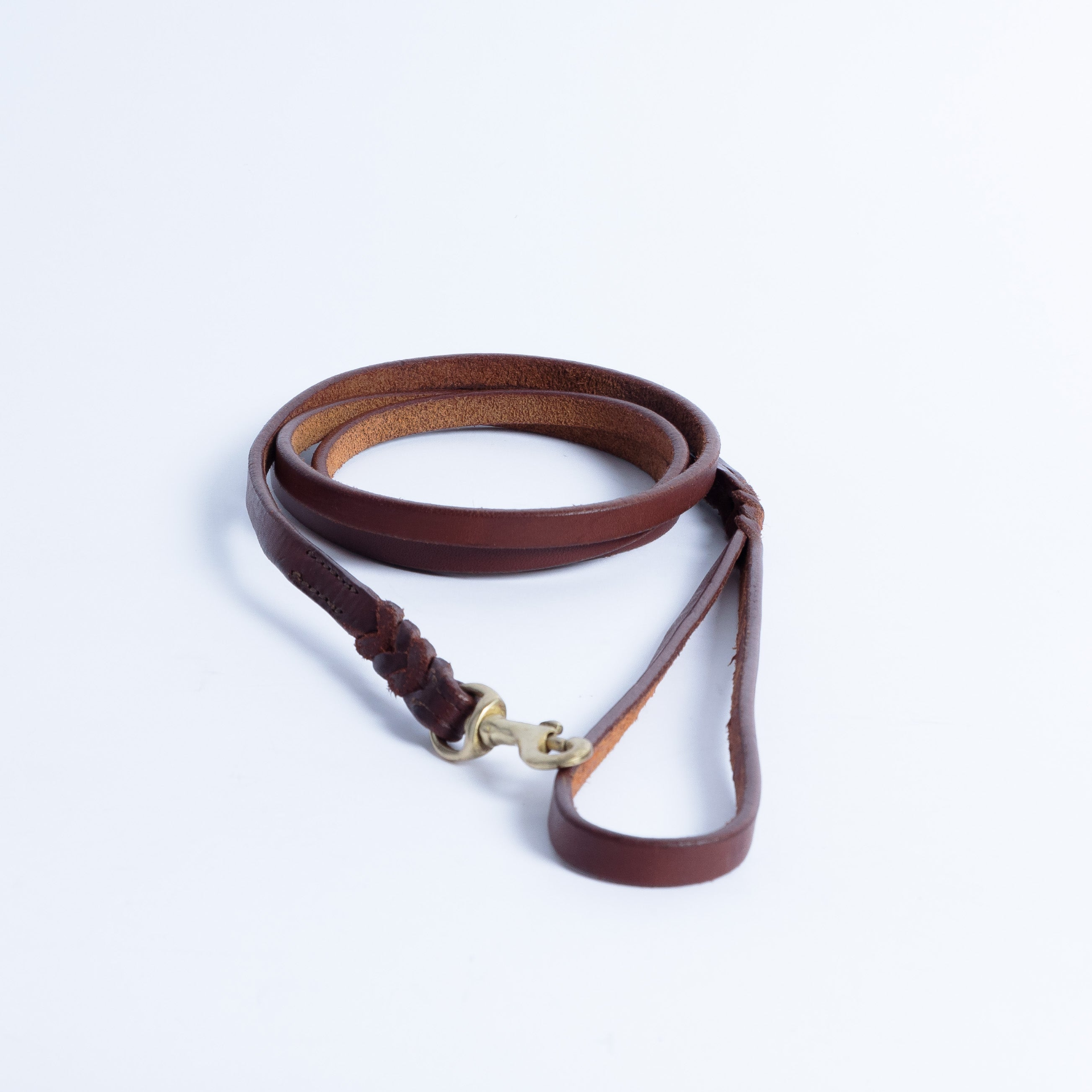 Extremely strong and durable, this leash collection is made of 100% Genuine Harness Leather and complimented with solid brass snaps. Perfect for training, walking or just about anything. The leash is hand- braided just under the handle and just above the snap hook.