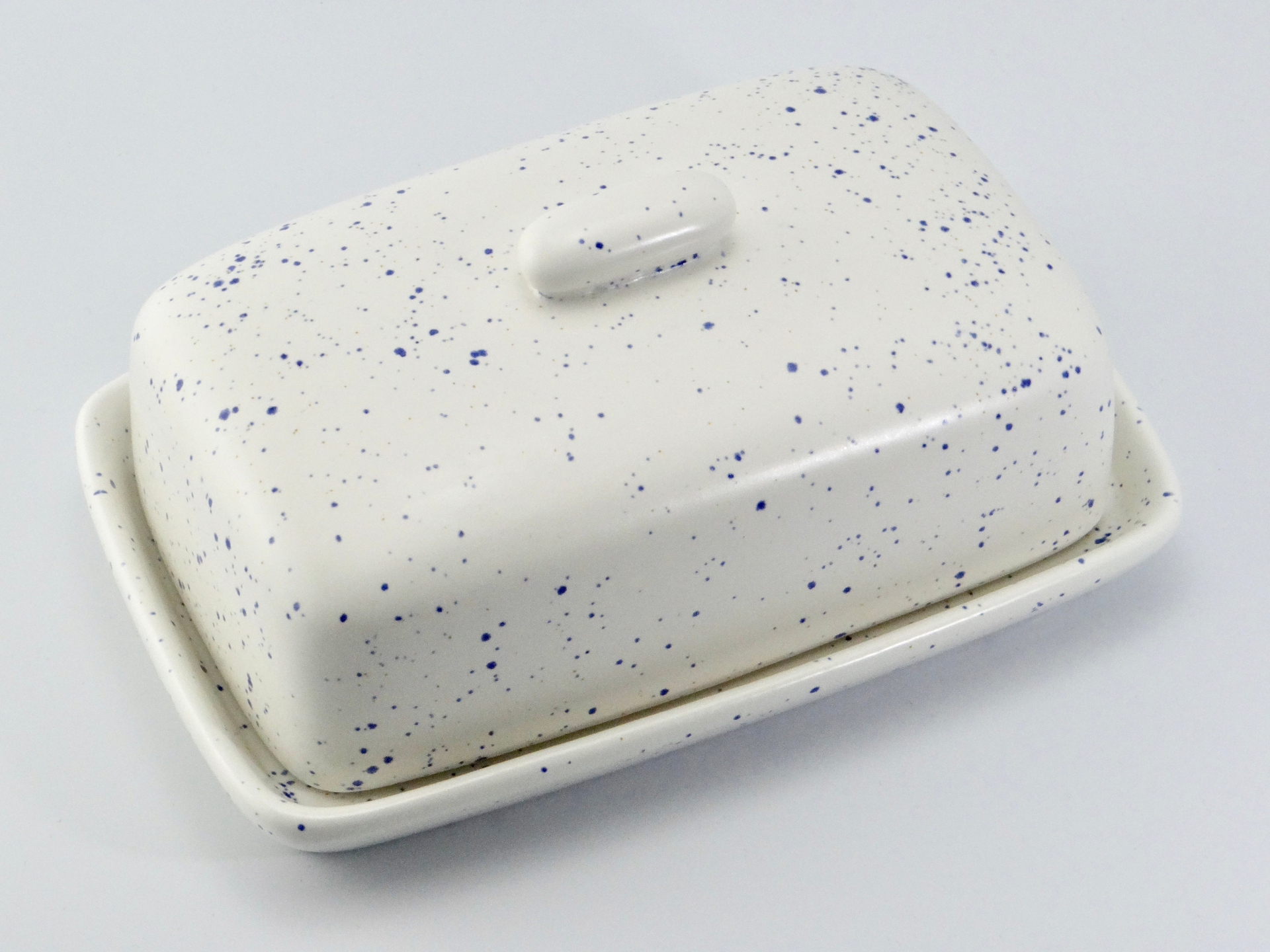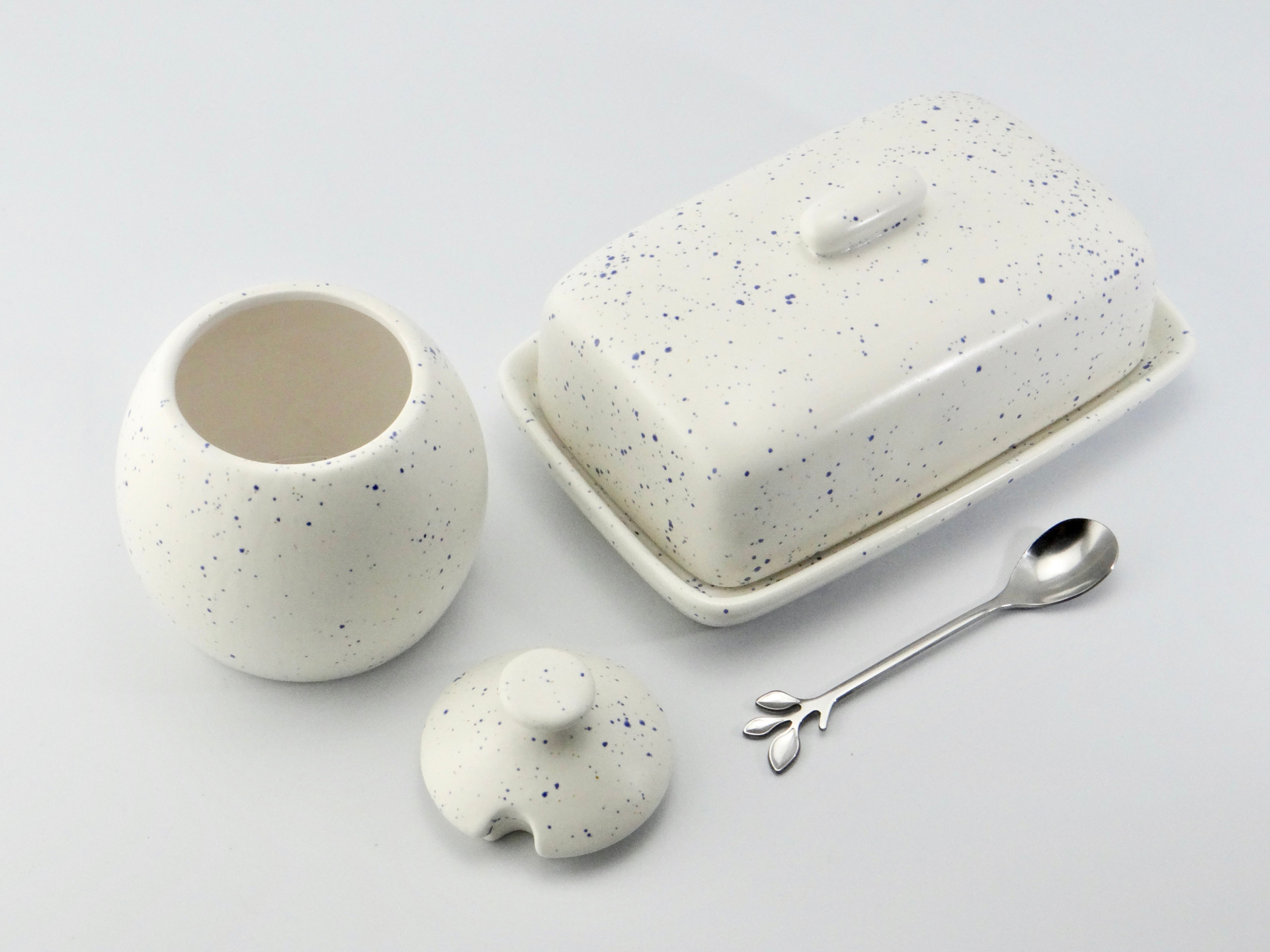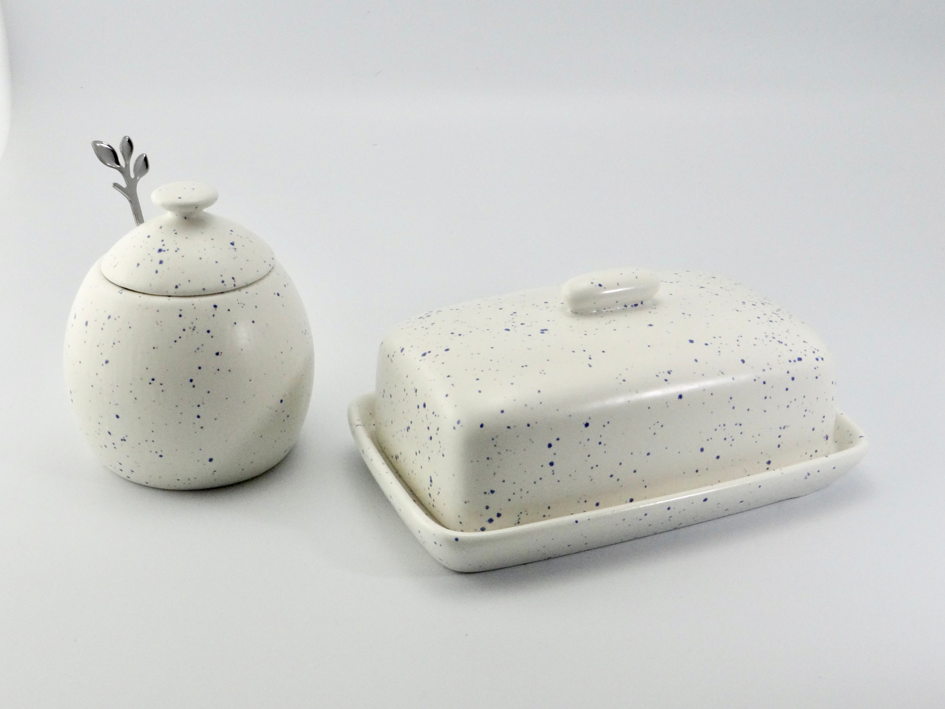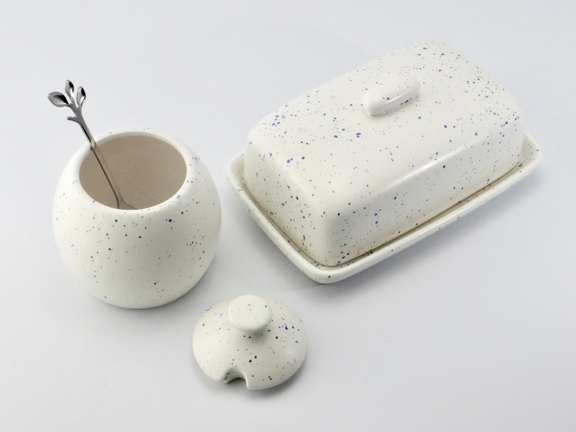 Butter Dish and Sugar Bowl Set - Light Blue Speckled Glaze