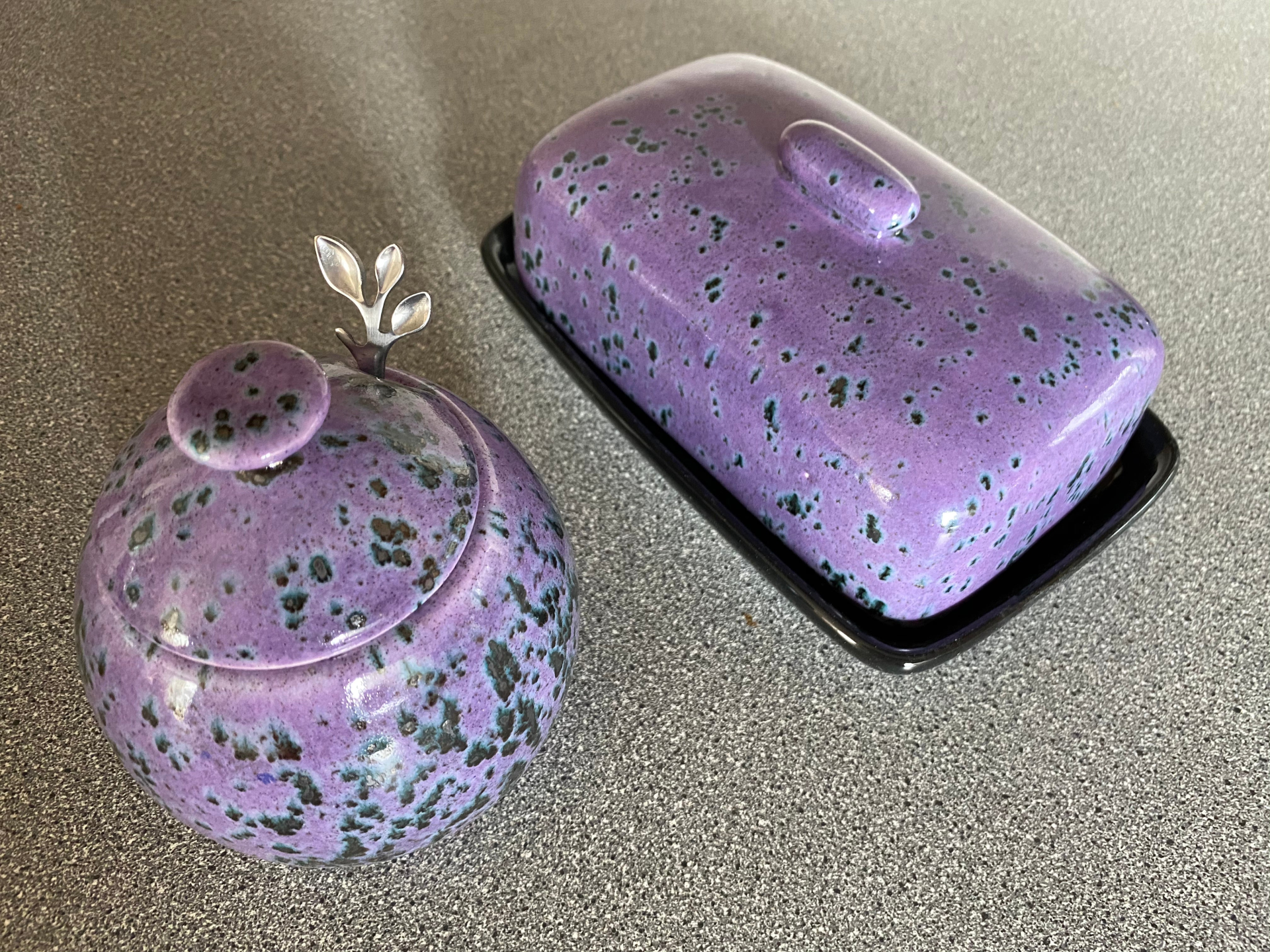 Butter Dish and Sugar Bowl Set - Speckled Purple