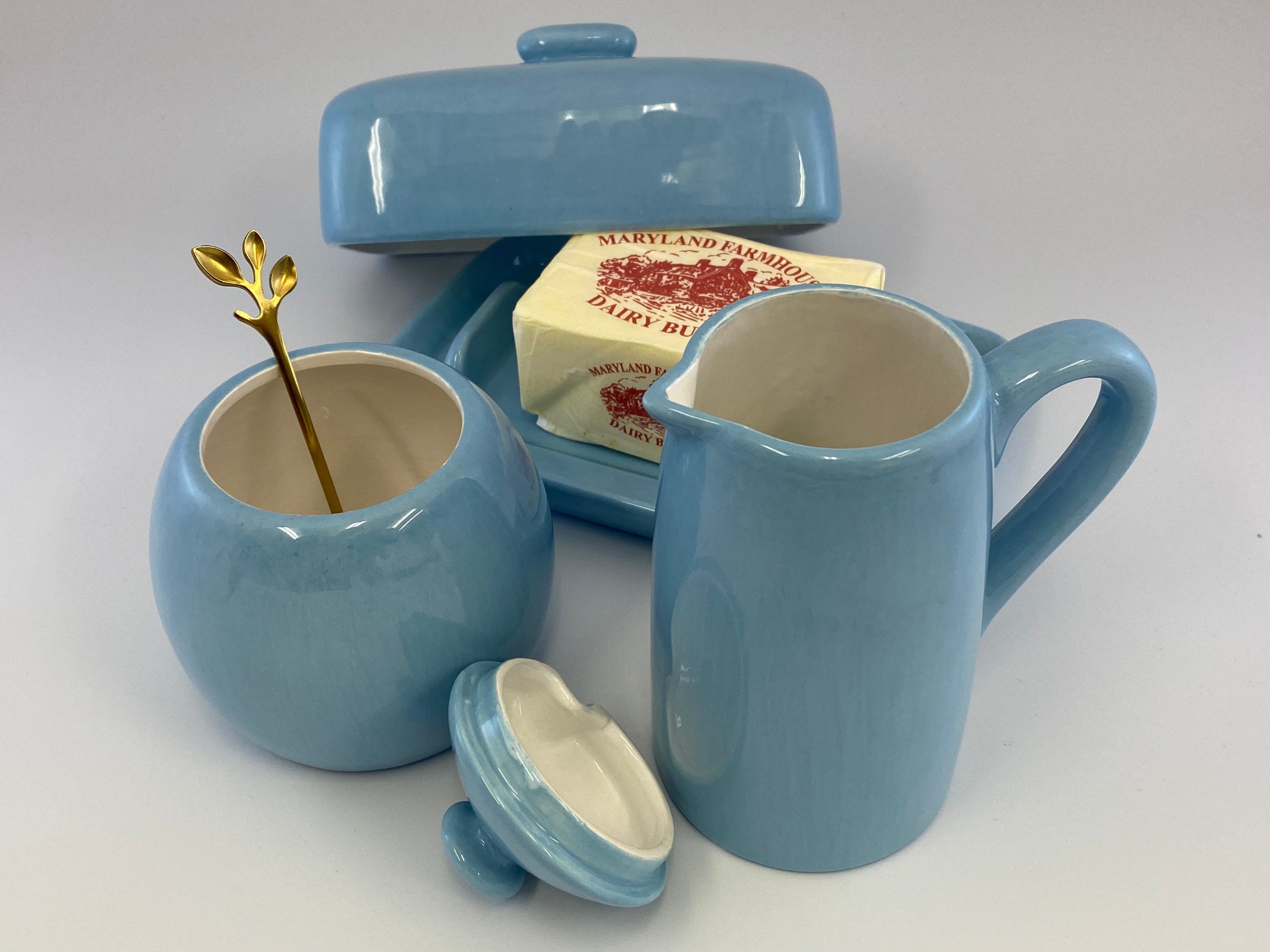 Butter Dish, Sugar Bowl and Cream Jug Set - Powder Blue