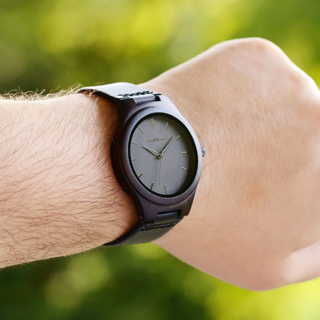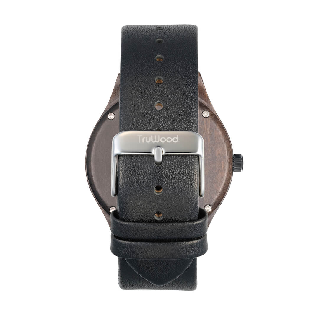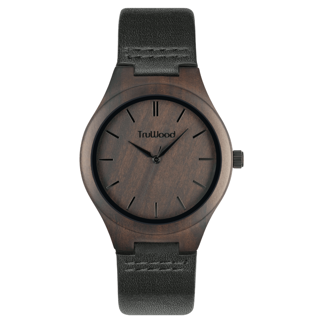 The TruWood Epoch defines a new beginning, taking our signature leather band style and infusing it with everything you love in a wood watch. The black sandalwood case captures a stunningly sleek profile, with the gun-metal details on the dial redefining minimalism in a modern style. A low-key look that quite literally matches with any outfit, the dark wood on black leather design is an instant classic among long-time fans and newcomers alike. If you are looking for a place to start, the Epoch is the one to choose.
