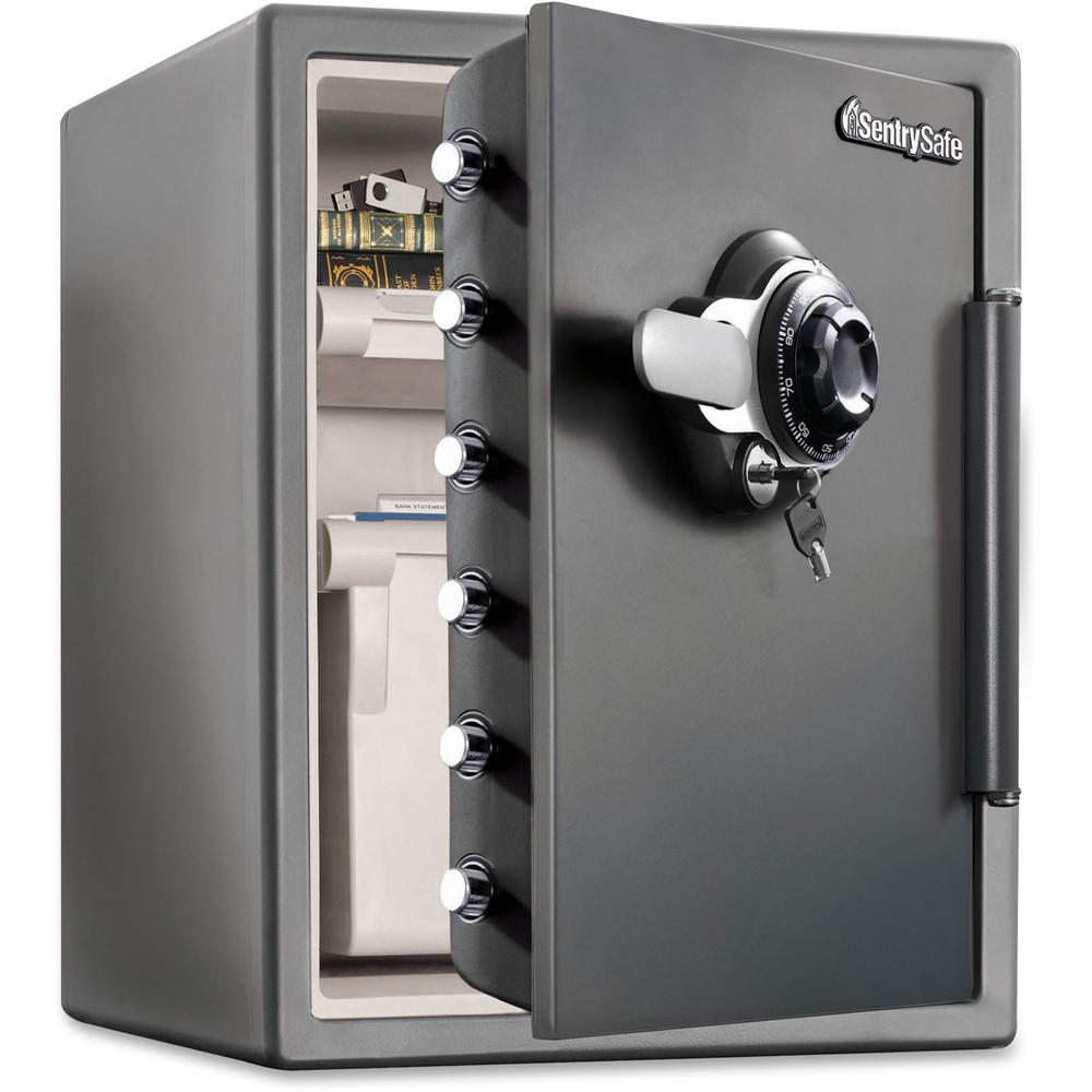This large 2.05 cubic foot safe provides reliable protection for important documents and valuables. ETL verified impact-resistance delivers reliable protection in the unpredictable conditions of a fire. The safe can withstand a 15' drop. It is also UL Classified for Fire Endurance (1-hour at 1700 degrees F), ETL Verified for 1-hour fire protection for digital media, including USB drives, CDs/DVDs and portable hard drives and ETL Verified water protection up to 8" of water for 24 hours. Combinations lock offers reliable access to your valuables. Dual keylock protects your safe from unauthorized access with an additional keylock. Six large, 1" live-locking bolts provide reliable protection against firearms. Pry-resistant hinge bar reinforces the door of the safe for added protection against theft. Included bolt-down hardware ensures thieves cannot remove the safe from your home or office. Steel safe also includes multi-position tray, deep file rack and door pocket with key rack.