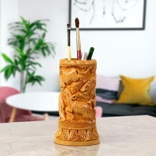 Forest Animals Wood Carving Pen Stand