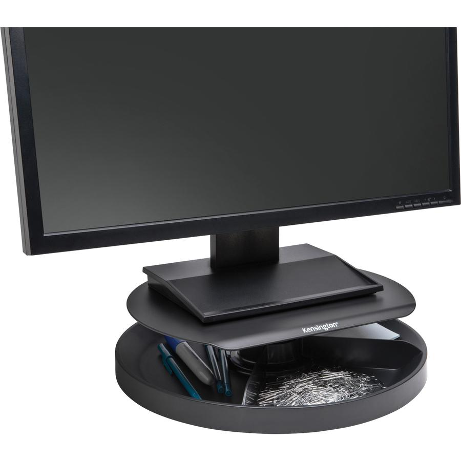 Spin2 monitor stand features a spinning, multicompartment storage area underneath the platform to provide easy access to your frequently used tools and accessories. SmartFit system allows you to select your personal height setting using the color-coded personal comfort system for a customized, ergonomic workstation. 360-degree spinning carousel adjusts in height to help reduce eye and neck strain while providing a small footprint to maximize the use of your desktop space. Monitor stand is designed for use with a wide-screen monitor up to 40 lb. (sold separately).