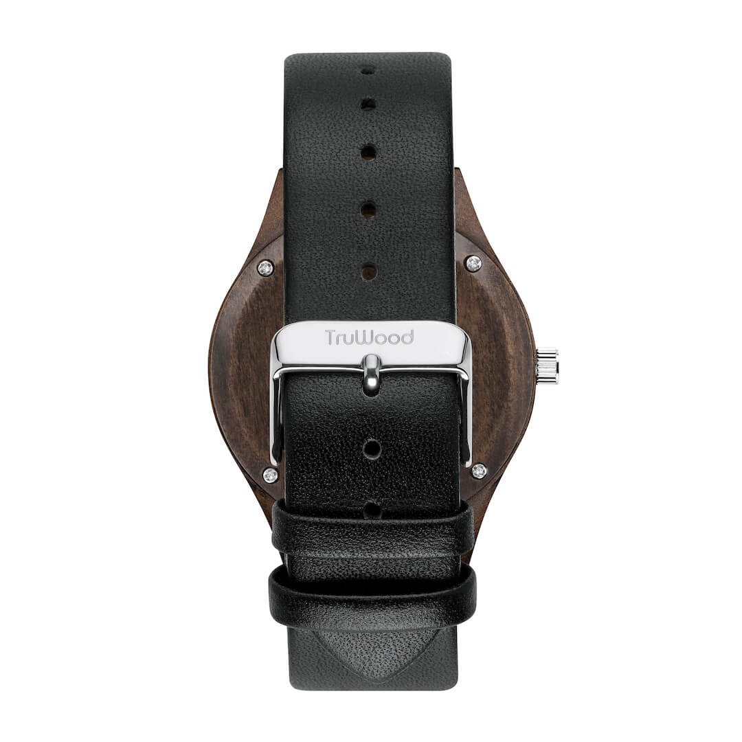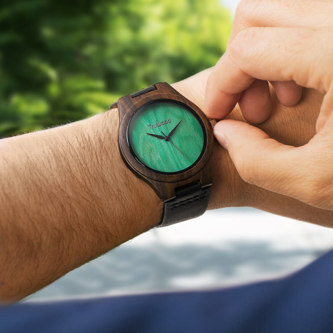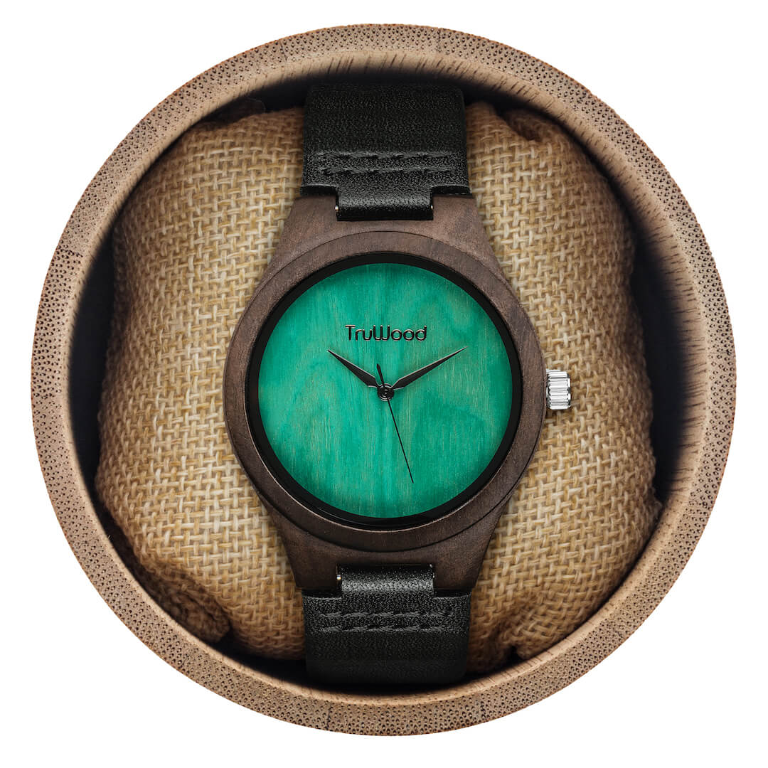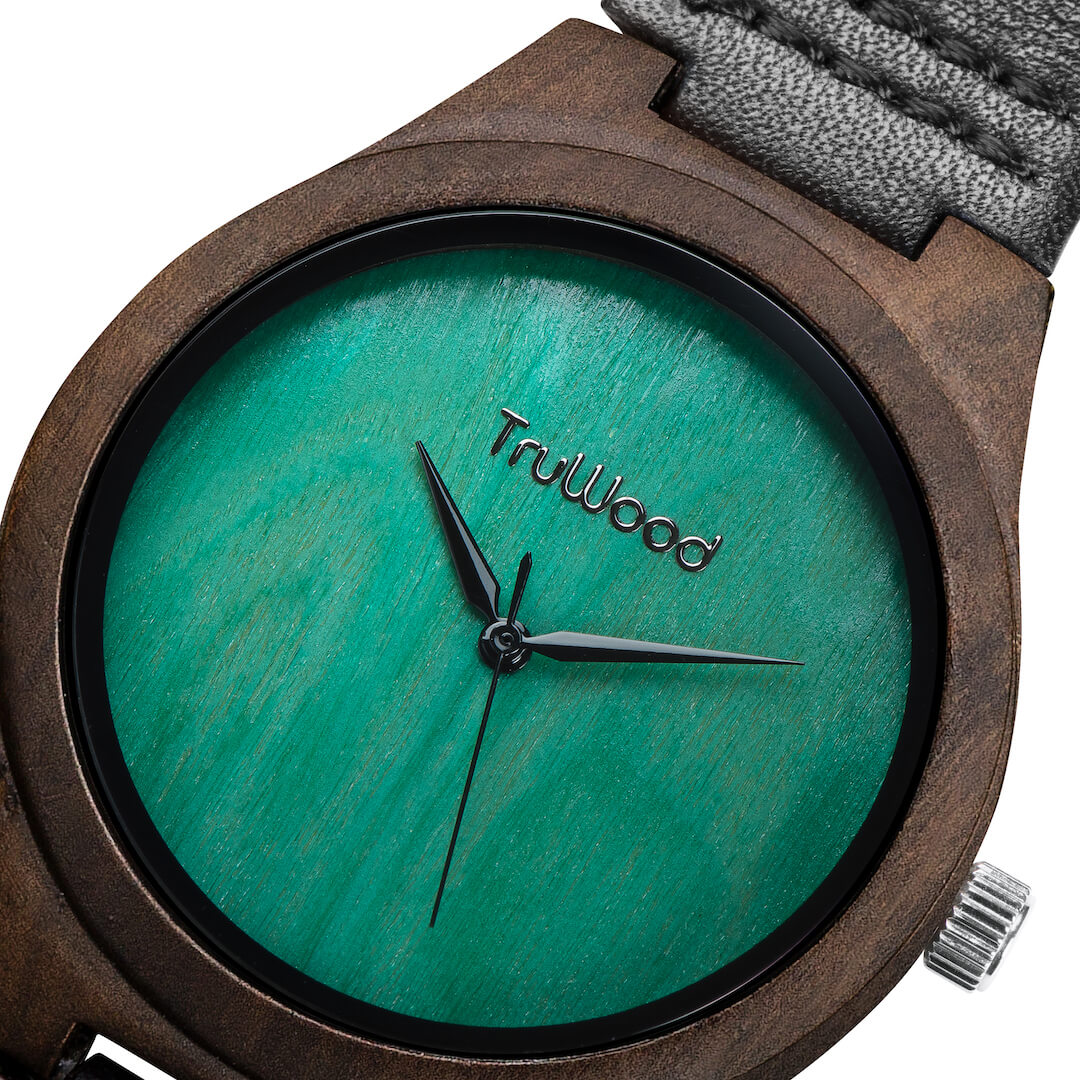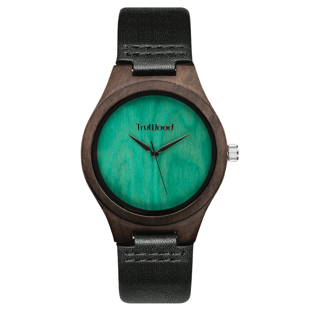 The TruWood Leaf Green offers a new beginning; define yourself with a watch as unique as you are. The case is made from 100% natural black sandalwood in a stunningly sleek profile. The blank green face is a clean slate that redefines minimalism in a modern style, contrasted by a silver metal crown to really make the colours pop. Jet-black hands deliver uncompromising style around a hand picked wood dial that elevates time-telling to a new standard. The genuine black leather strap tops it off with an adjustable snug fit, for an everyday look fit for all occasions.