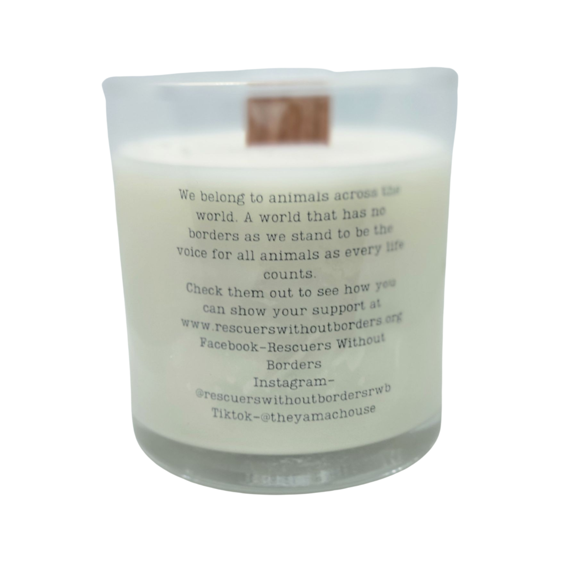Rescuers Without Borders is a Texas based animal rescue specializing in rescues across the world, particularly in Turkey. They believe in a world that has no borders for animals in need and that they stand to be the voice for all who need them as every life counts. With your purchase of this candle, 30% of the proceeds go to help the Rescuers Without Borders crew continue their amazing work around the world.