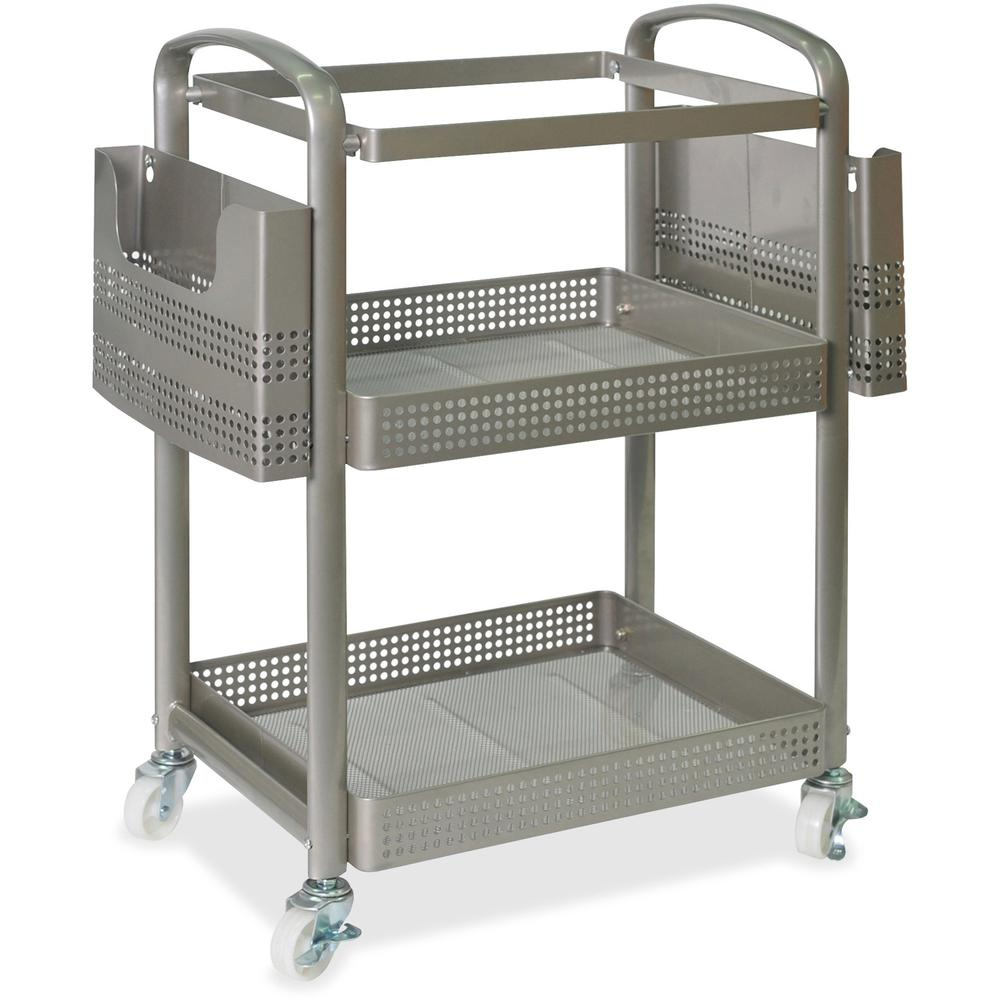 Mobile cart features a heavy-duty metal frame to help you manage and organize more items at a time while keeping them within quick reach. Smooth-rolling casters with two that lock glide across surfaces to quickly travel from room to room with your files. Main compartment fits either letter-size or legal-size hanging folders for versatile storage options. Two side pockets offer a handy location to store your frequently accessed folders. Bottom mesh tray is perfect for larger items, stacks of papers, books and more.