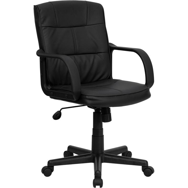 Mid-Back Black LeatherSoft Swivel Task Office Chair w/ Arms
