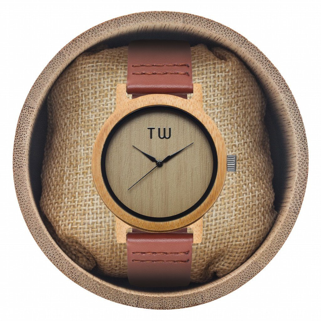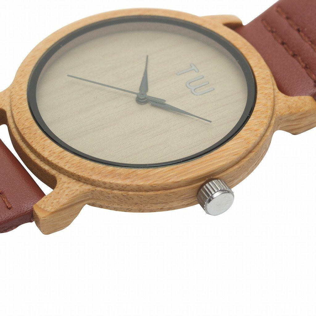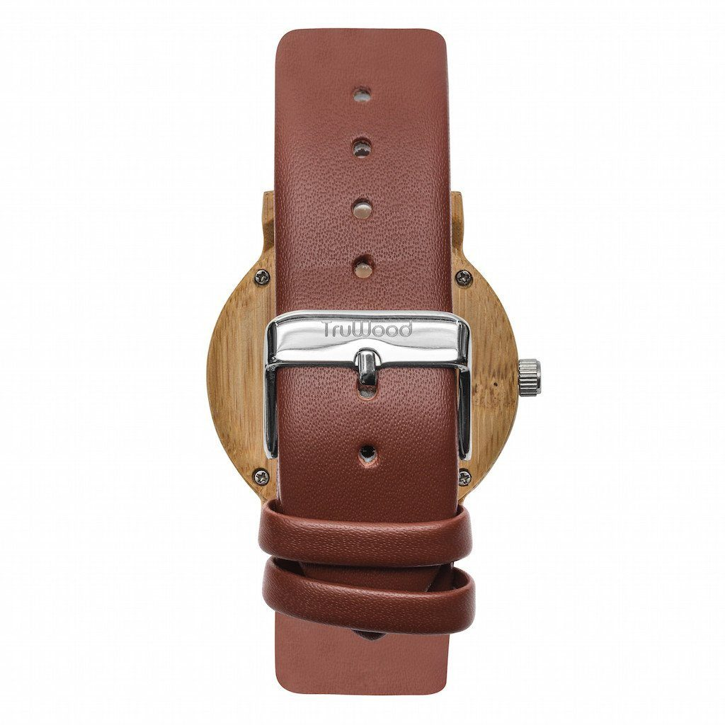 The TruWood Minimal reveals that often less can be more. Define yourself with a watch as unique as you are. Designed to break tradition, this timepiece's clean face appeals to modern aesthetics and natural beauty - one of which is timeless. The casing is made 100% bamboo that redefines minimalism in a modern style, contrasted by a silver metal crown to really make the colours pop. A genuine brown leather strap provides an adjustable snug fit, and the jet-black hands deliver uncompromising time.