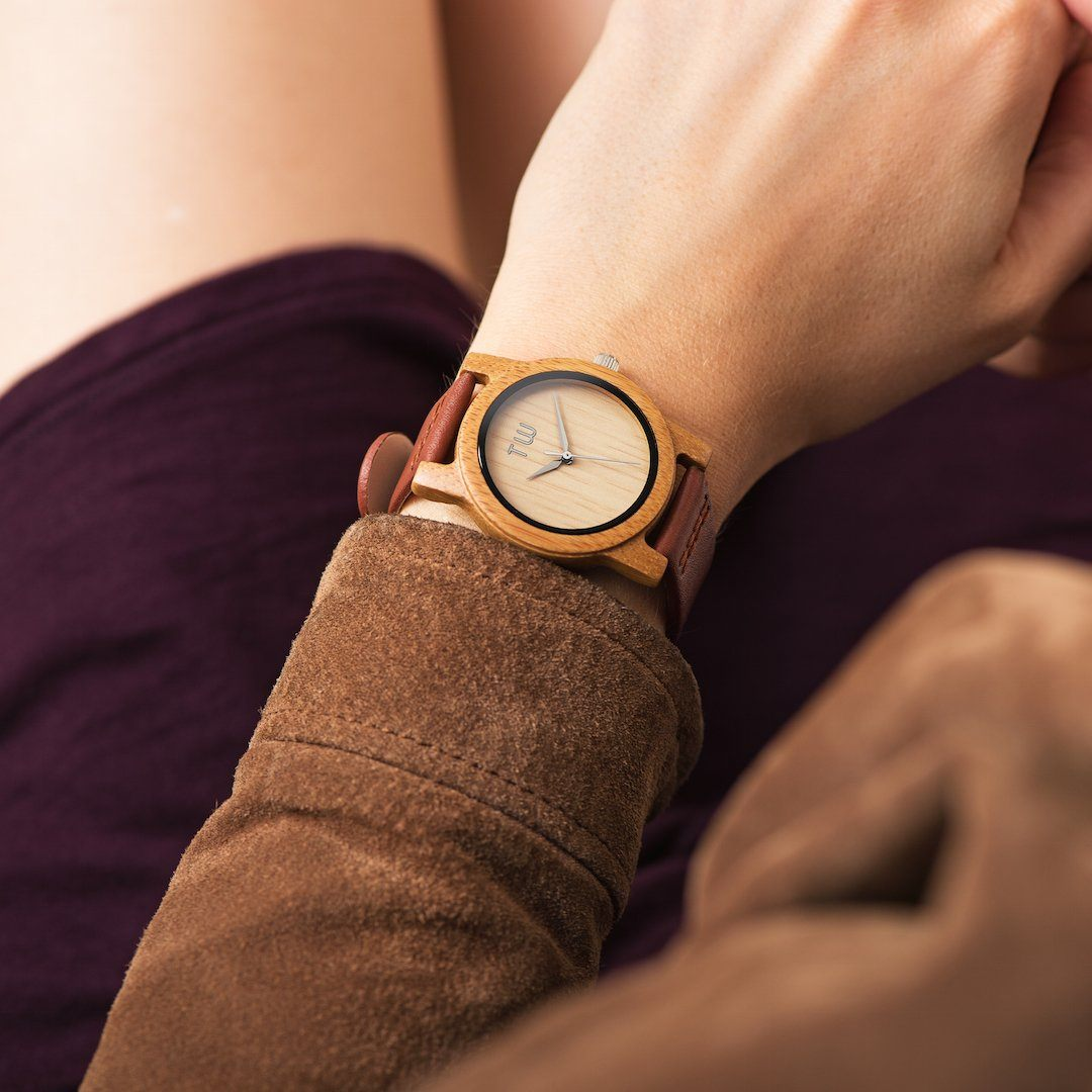 The TruWood Minimal reveals that often less can be more. Define yourself with a watch as unique as you are. Designed to break tradition, this timepiece's clean face appeals to modern aesthetics and natural beauty - one of which is timeless. The casing is made 100% bamboo that redefines minimalism in a modern style, contrasted by a silver metal crown to really make the colours pop. A genuine brown leather strap provides an adjustable snug fit, and the jet-black hands deliver uncompromising time.