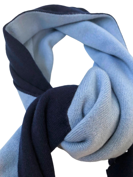 Navy Light Blue Cashmere Knitted Double Face Scarf