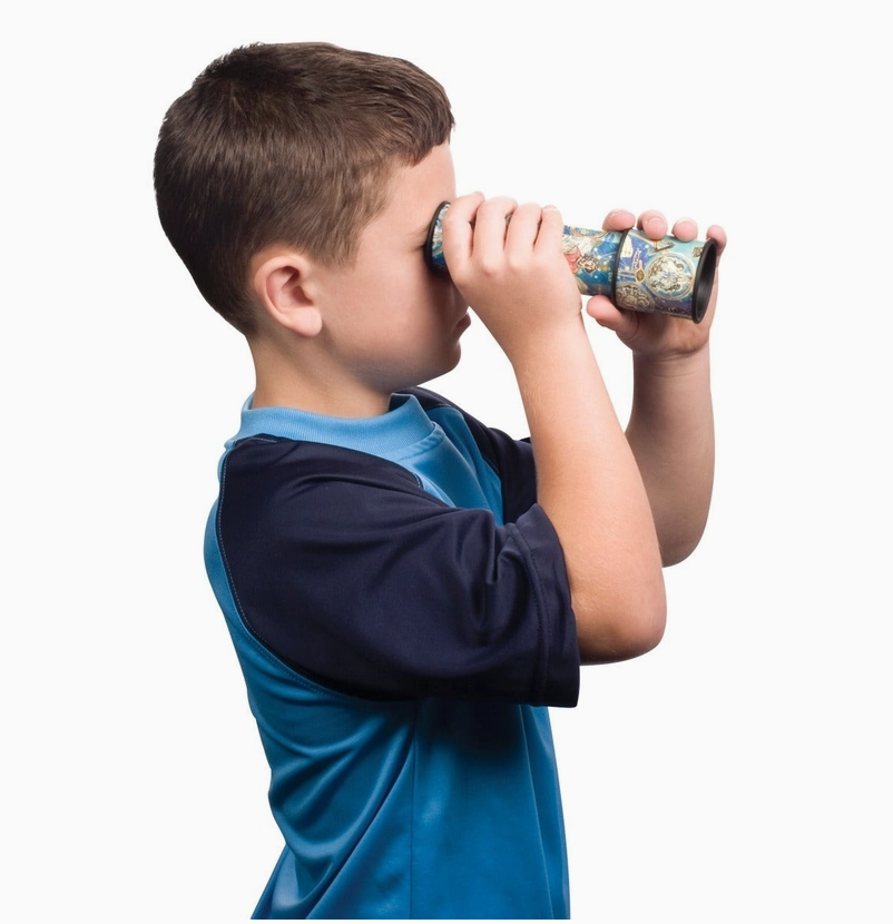 Available in 2 styles with exquisite details, this beautiful kaleidoscope looks like a telescope and a secret guide to the world and stars in one. Available in either Maps or Astrology styles. The Old-World Astrology kaleidoscope features a blue-colored base with old astrological images, including some early astronomers and the 12 zodiac signs. The Old World Maps kaleidoscope has a soft brown base and includes illustrated segments of some early exploration-age maps all around the exterior. Kaleidoscopes feature a mix of geometric designs inside that change form and color as the end is rotated. An assortment of 12 kaleidoscopes stands inside a blue 9.8-inch x 7.5-inch display case. • Age Grade: 5+ • Product Dimensions/Weight: 2.1 L x 6.5 W x 2.1 H / 0.2 lb • Inner Pack Dimensions/Weight: 10.1 L x 7.6 W x 7.5 H / 3.3 lb • Made In: Taiwan • Batteries not required