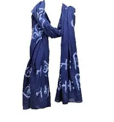 This design has been created using shibori techniques and then applying natural Indigo for dying the fabric. This mantra design is created using stitching the fabric a hand technique that is time-intensive and requires skill and attention to detail. Each piece is a work of art and completely unique. This piece is made from a lightweight cotton voile fabric, which is soft but durable and looks calming, bright, and chic.