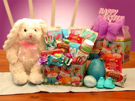The Peter Cottontails Easter Care Package includes: a 10-inch plush Easter Rabbit, Hershey's mini Milk Chocolate Bunny, Milky Way Easter cream filled egg, 6-piece assorted Hershey candies, Easter Mini Egg bubble gum, Assorted chocolate mini foil wrapped Easter eggs, Reese's peanut butter filled chocolate eggs, Foil wrapped chocolate Easter bunny, Candy bubbles, Two packages of mini Easter M & M's, Malted Easter eggs, Easter malt balls, Easter marshmallow peeps, Happy Easter pick