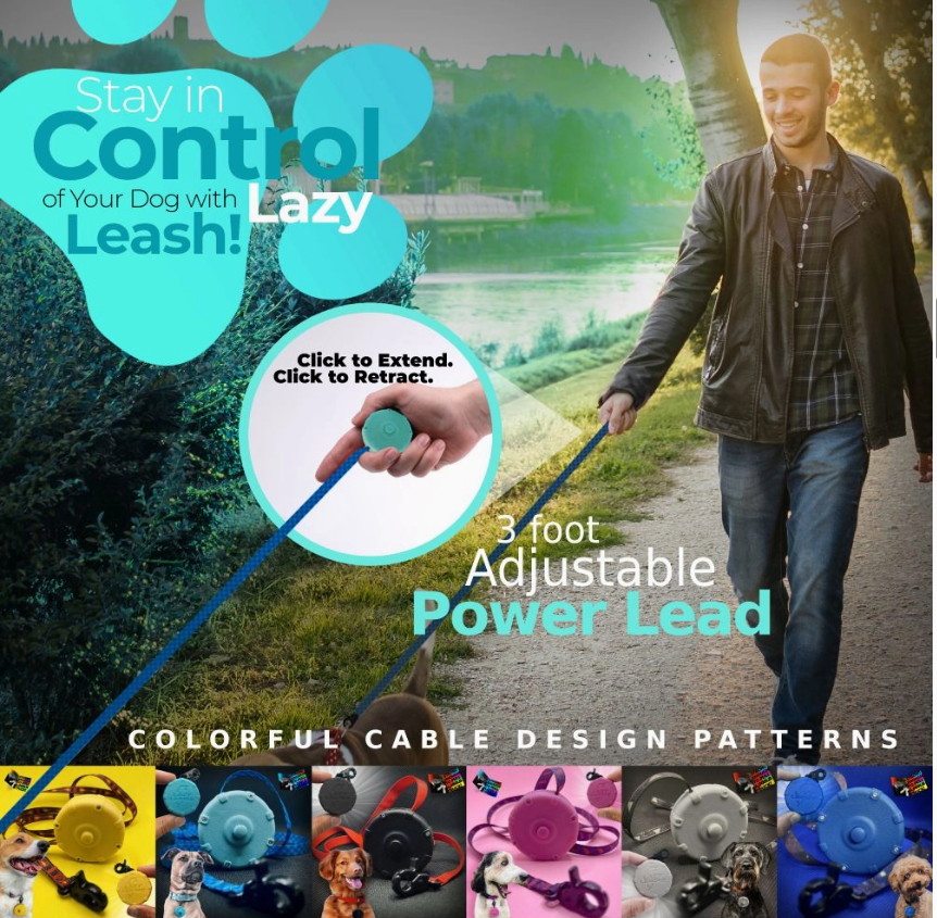 Excite your customers with a colorful point of sale retail counter display! Includes 18 unique leash designs—powerful enough to withstand tugs, jerks & pulls from ANY size dog. Featuring ULTRA-GRIP textured handle and tangle-free colorfully designed power cables. Proven re-orders & money back guarantee! • Pocket-Size Wearable Dog Leash Strong Enough to Tow a 4,000 LB Truck. • Patented 40 Inch Adjustable Lead to Keep Your Dog Safe & Under Control. • Award Winning Design. Click to Extend—Click to Retract. It's that Simple! • Powerful Anti-Slip Polymer Handle and Unbreakable Tangle-Free Power Cable. • Take a Hands-Free Stroll, or Grab the Lazy Leash to Take Control. Always there when you need it. Lazy Leash won the Pet Business Industry Award as the experts choice as the most convenient leash in the world. Ideal for hiking, adventure, training, fun & control. Put it in your pocket, clip it to your keychain, or let your dog carry the leash!