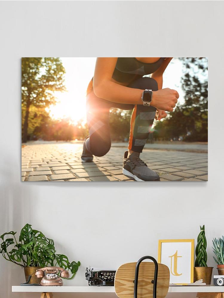 Runner Woman Getting Ready Wrapped Canvas -Image by Shutterstock