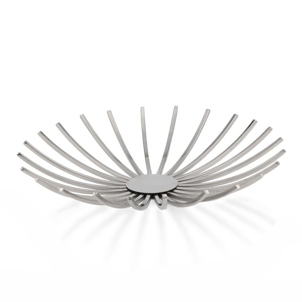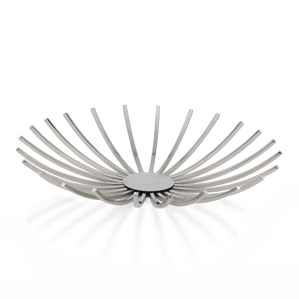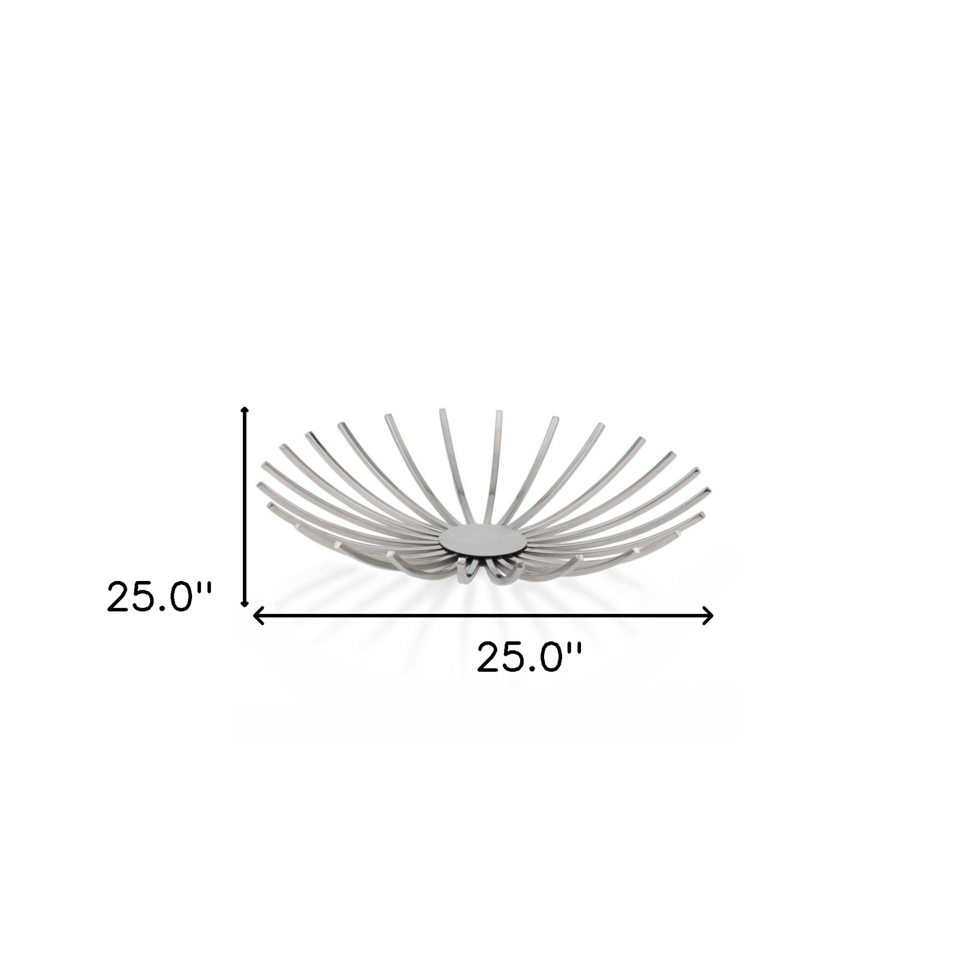 The Shiny Silver Open Spike Centerpiece Bowl will be a truly unique addition to your space. Spanning more than two feet across, this massive bowl is made of stainless steel and has an open prong design that will bring a contemporary and slightly edgy vibe to the room. A great centerpiece option, this low bowl would look fabulous on your dining table, coffee table, counter or large bookshelf. 4" x 25" x 25".