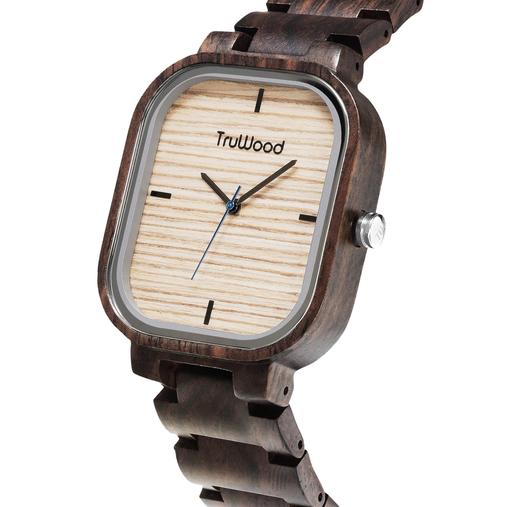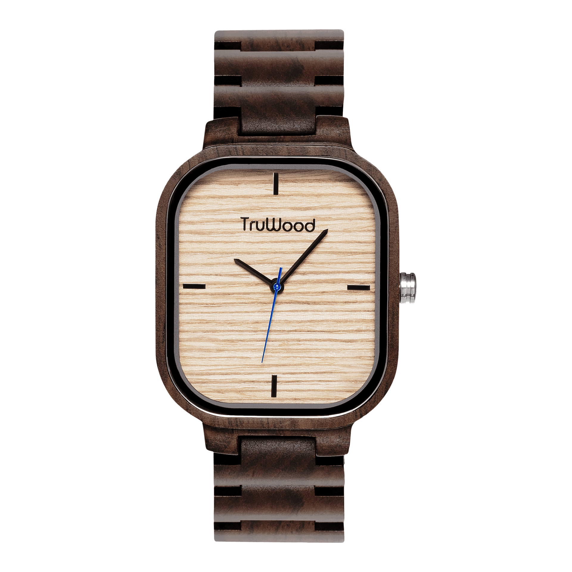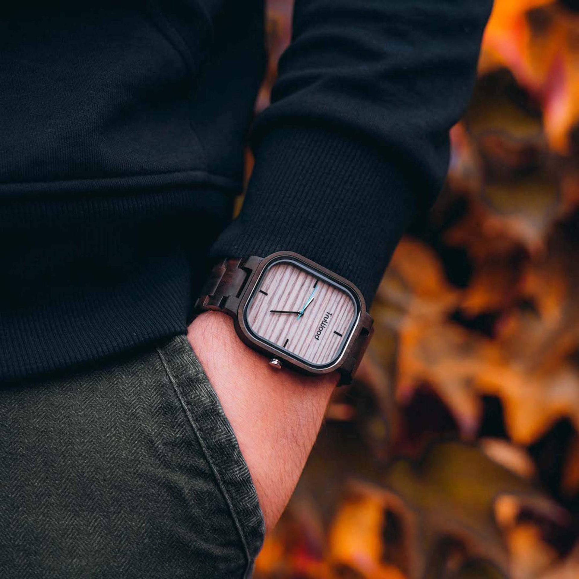 Our most requested collection to date, the highly anticipated Square watches are finally here. The TruWood Skyline features a sharp, defined look for the rugged journeyman with a clean-cut, light wood dial with a pop of blue on the seconds hand. Using our new single-link band, this timepiece has a smooth look around the wrist in a refreshing black sandalwood design. Step into a new light and don't be afraid to break boundaries once in while.