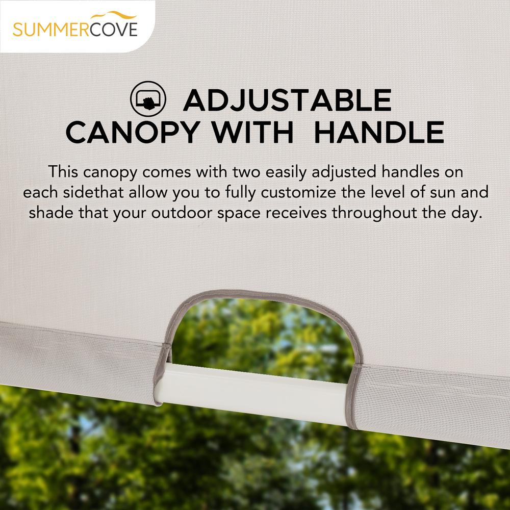 Have you ever wanted to relax outside in your backyard, but it was too hot in the direct sun to enjoy being outside? The SummerCove sling pergola is your answer. This 12 ft. x 14 ft. pergola allows you to adjust the canopy based on your personal preference. Roll it up to enjoy a warm day or roll it down to protect yourself from the glaring sun. Compact enough for tight spaces and yet large enough to accomodate a few pieces of lounge furniture, the sling pergola, made of a steel frame will instantly enhance any backyard