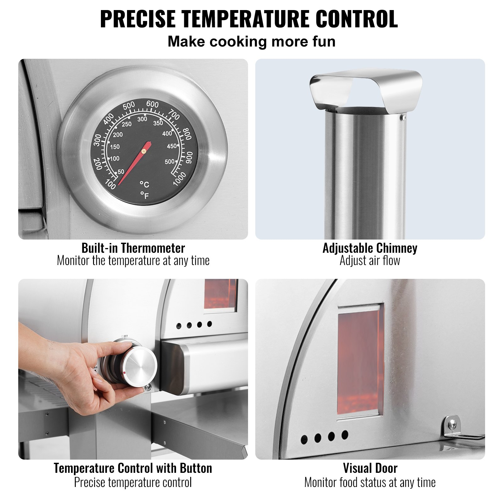 VEVOR 22" Outdoor Pizza Oven Portable Pellet/Gas Oven with Casters for Camping