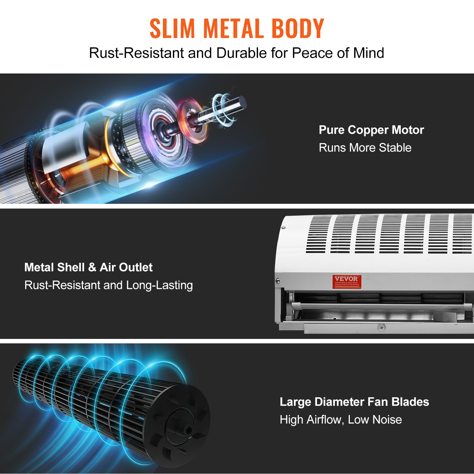 VEVOR 36" Commercial Indoor Air Curtain Super Power 2 Speeds 1200CFM, Wall Mounted Air Curtains for Doors, Indoor Over Door Fan with Heavy Duty Limit Switch, Easy-Install 110V Unheated