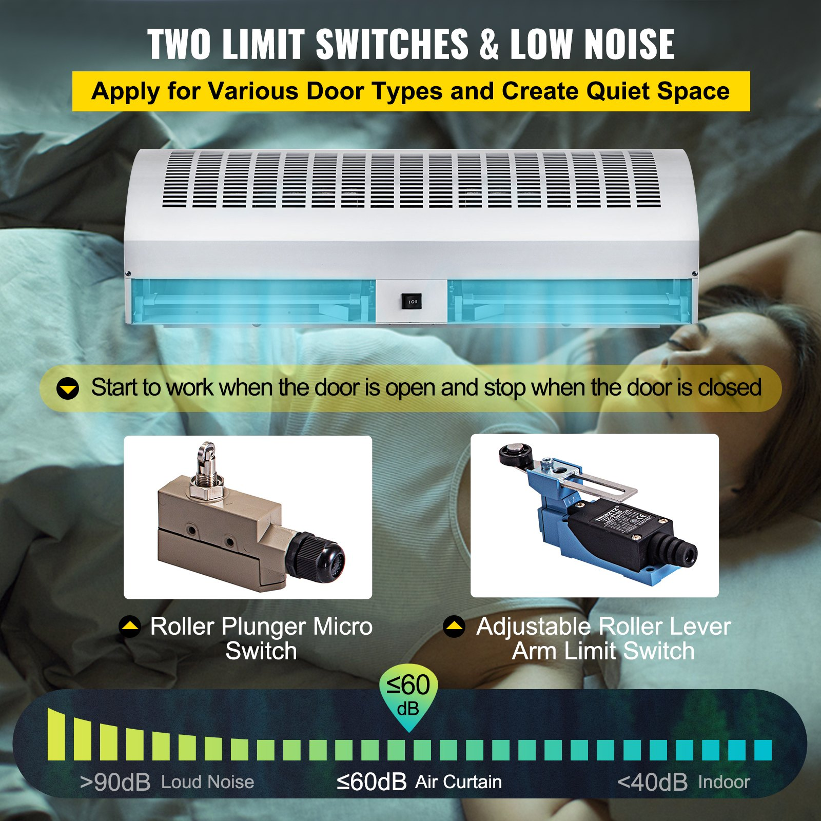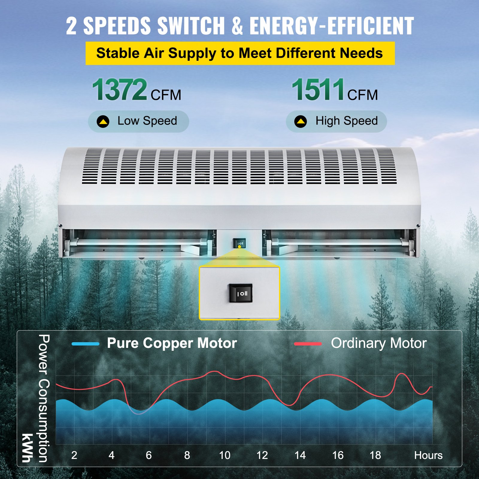 VEVOR Air Curtain 35-Inch Commercial Air Curtain 2 Speeds Door Air Curtain 1511 CFM/1372 CFM with 2 Limited Switches Low Noise Indoor Air Curtain