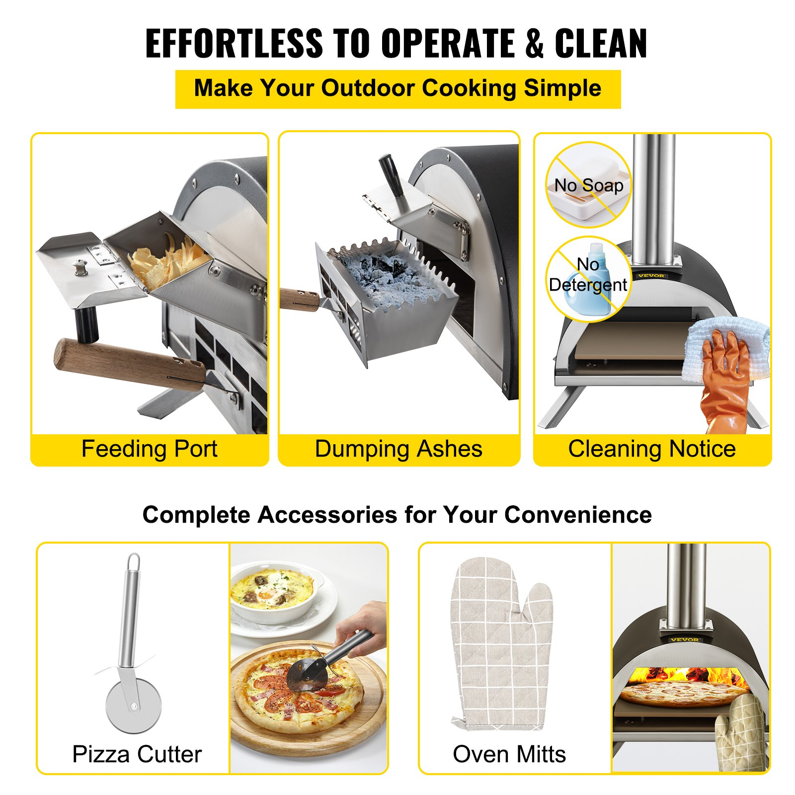 VEVOR Outdoor Pizza Oven 12",Wood Fired Oven with Feeding Port,Wood Pellet Burning Pizza Maker Ovens 932℉Max Temperature Stainless Steel Portable Pizza Ovens with Accessories for Outdoor Cooking.
