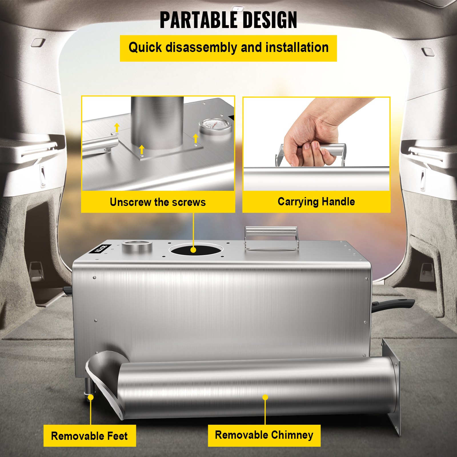 Adjustable Height of Feet: 0.8"/20 mm,Pizza Size: 12",Max Temperature: 600℃/1100℉,Model: VV-PSLHWBXS-748139,Material: Stainless Steel,Weight: 37.0 lbs/16.8 kg,Fuel Type: Wood Pellet & Charcoal,Product Size: 15.7" x 30.7" x 27.9"/399 x 781 x 709 mm