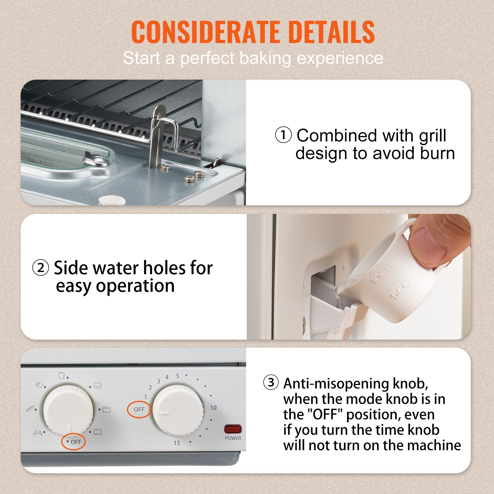 VEVOR Steam Oven Toaster, 12L Countertop Convection Oven, 1300W 5 In 1 Steam Toaster Oven, 7 Cooking Modes Air Fryer Convection Oven Combo with Baking Grill, Ash Tray for Sandwich, Bread, Pizza