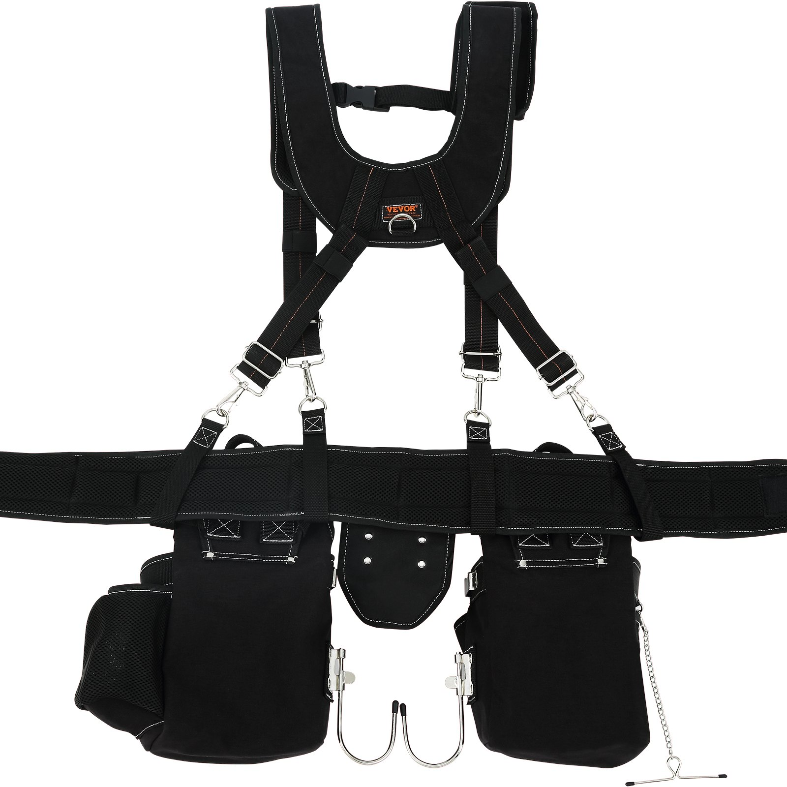VEVOR Tool Belt with Suspenders, 34 Pockets, 29-54 inches Adjustable Waist Size, Tool Belts for Men, 1250D Nylon Heavy Duty Carpenter Tool Pouch for Carpenters, Electricians, and Gardening, Black