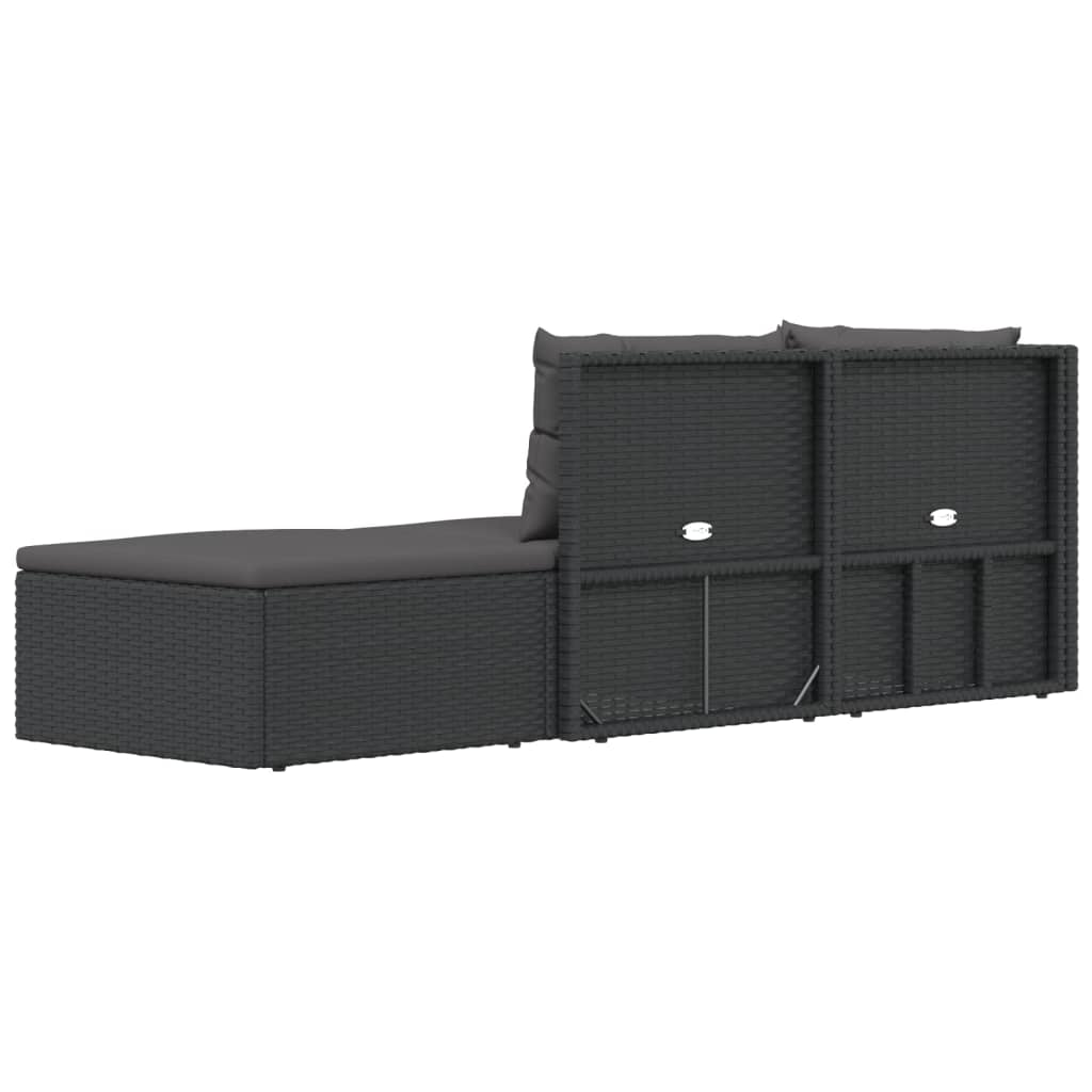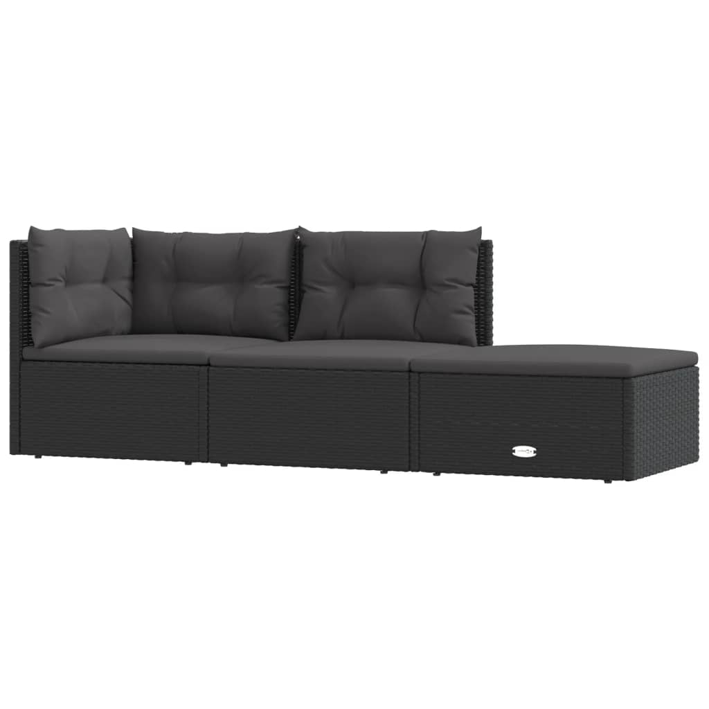 vidaXL 3 Piece Patio Lounge Set with Cushions Black Poly Rattan