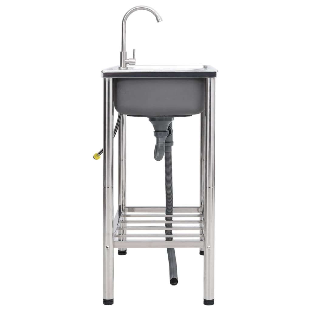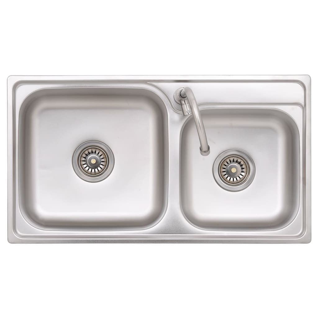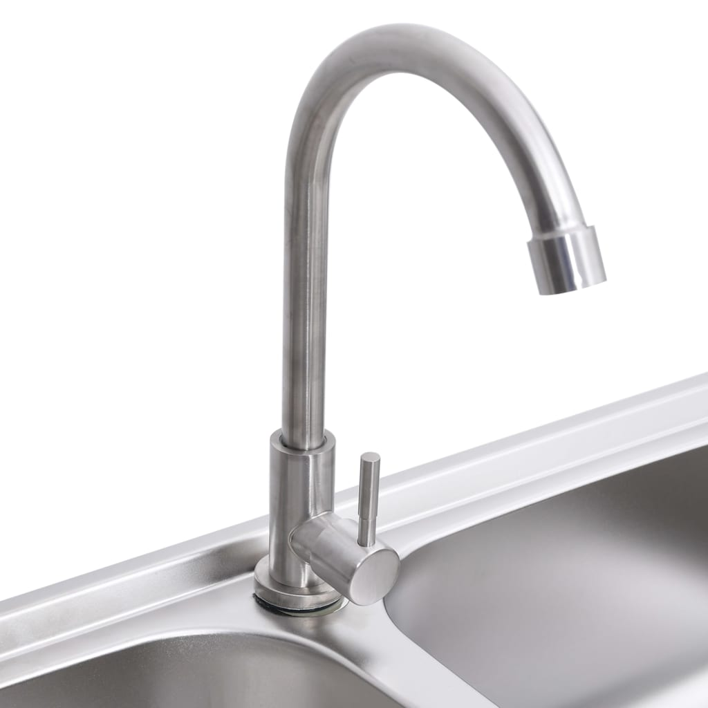 vidaXL Camping Sink Double Basins with Tap Stainless Steel