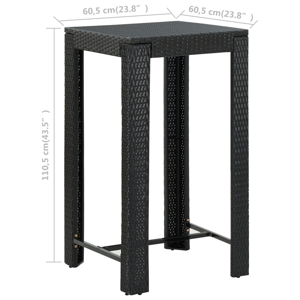 vidaXL Patio Bar Table Black 23.8"x23.8"x43.5" Poly Rattan