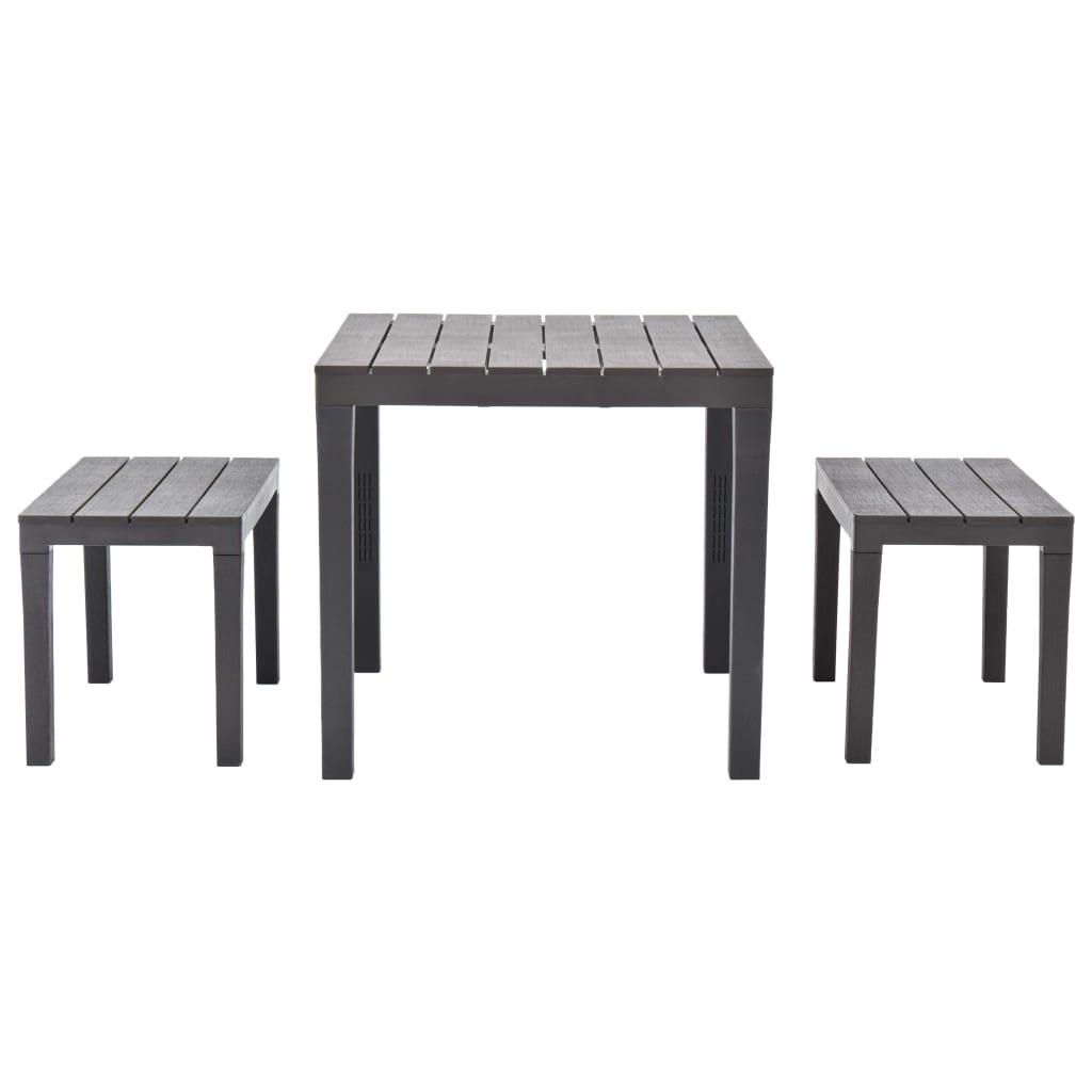 vidaXL Patio Table with 2 Benches Plastic Brown