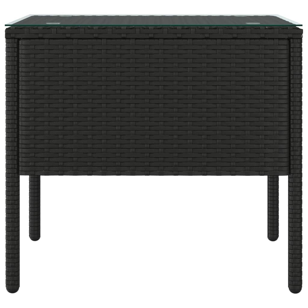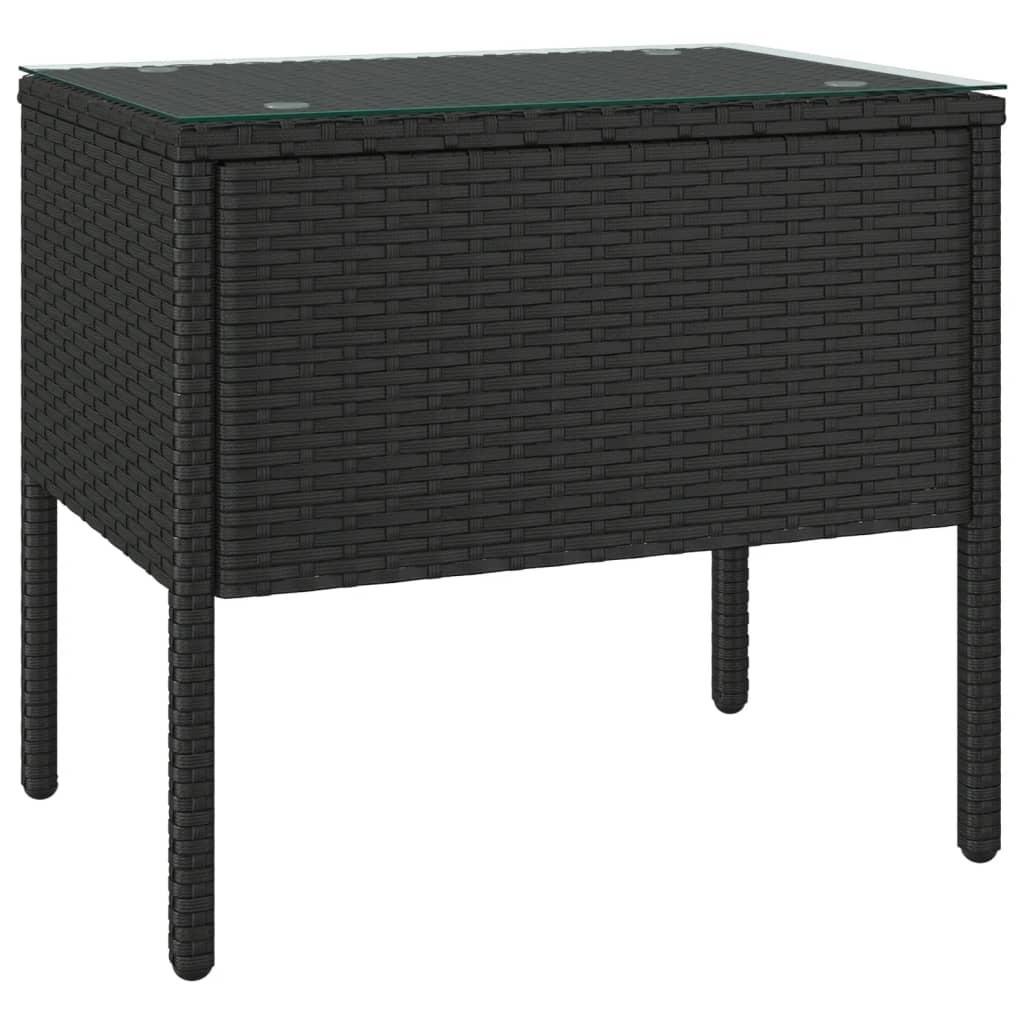 vidaXL Side Table Black 20.9"x14.6"x18.9" Poly Rattan and Tempered Glass