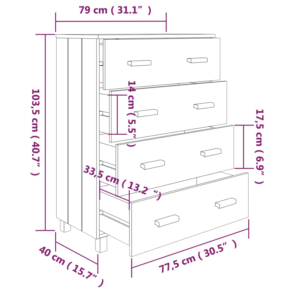 This drawer cabinet is made of solid pinewood, making it stable and sturdy. The highboard has 4 smooth sliding drawers, providing ample storage space for keeping your various daily essentials well organized and within easy reach. Additionally, the sturdy tabletop is perfect for displaying decorative objects, photo frames, and potted plants.