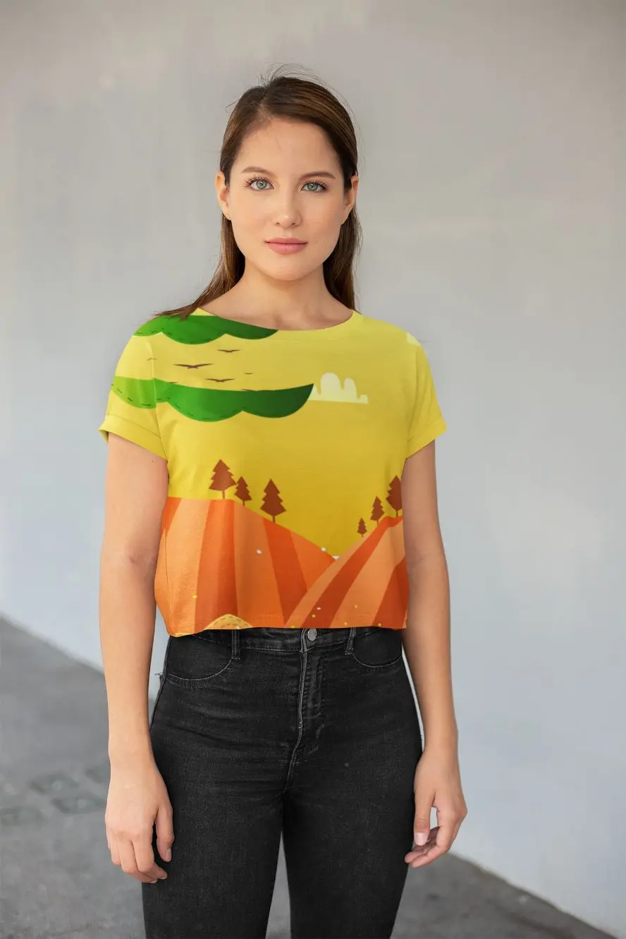 Looking for you next wardrobe favorite? Well, look no further because this crop tee is printed and sewn to fit you just right. To top that off, the original all-over design is definitely worth showing off, so don't hesitate to own one of these tees - they're meant to be adored.