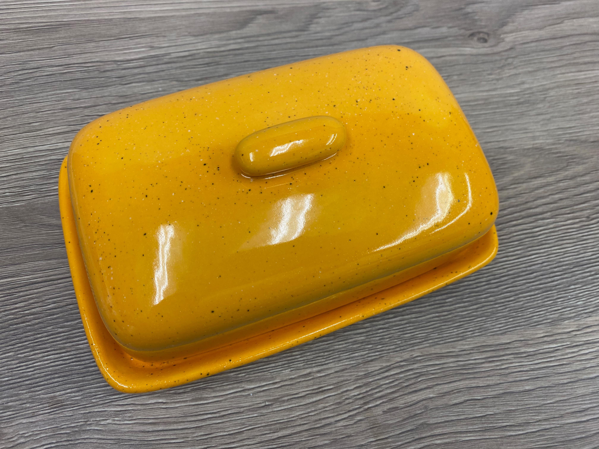 A yellow butter dish with lid is an ideal tableware gift for any couple looking for a covered butter dish or butter keeper. Butter will stay soft and easily spreadable.